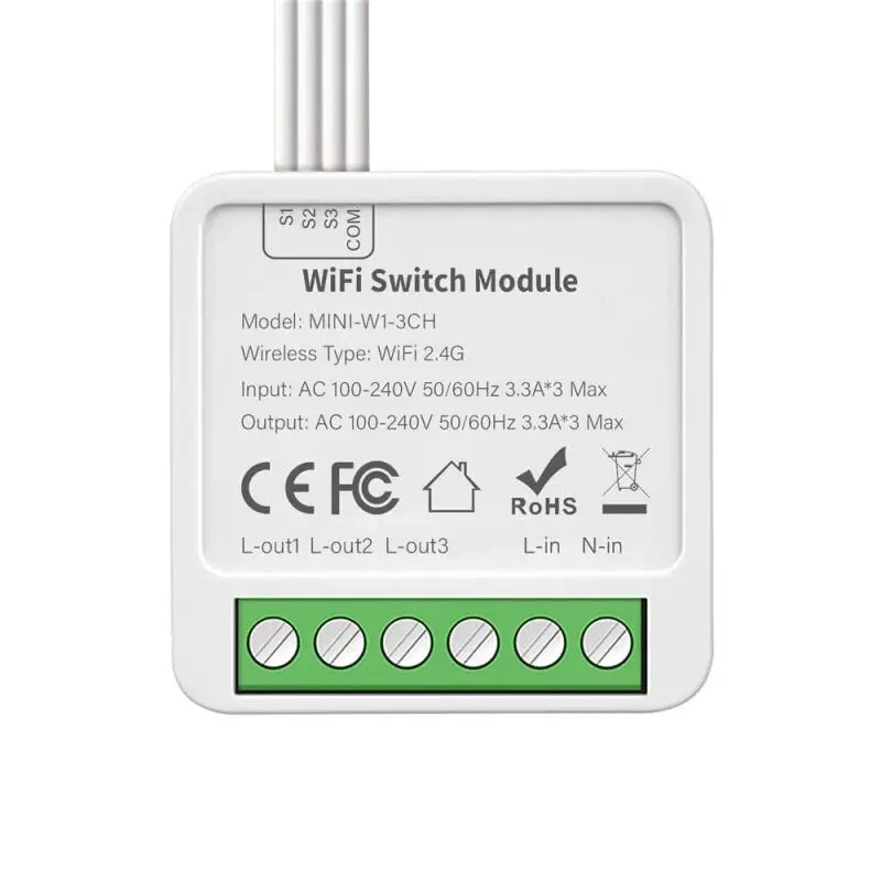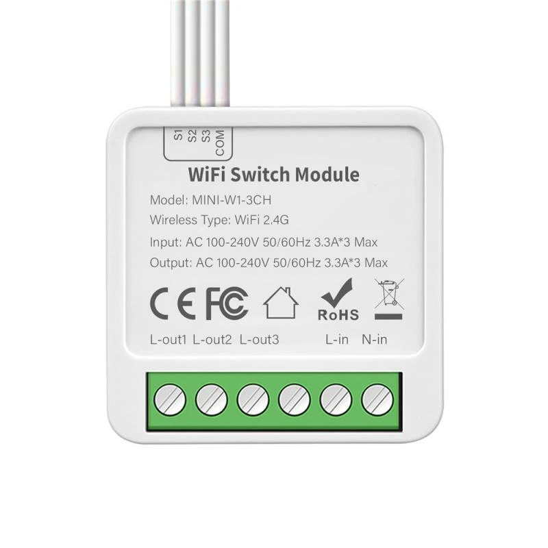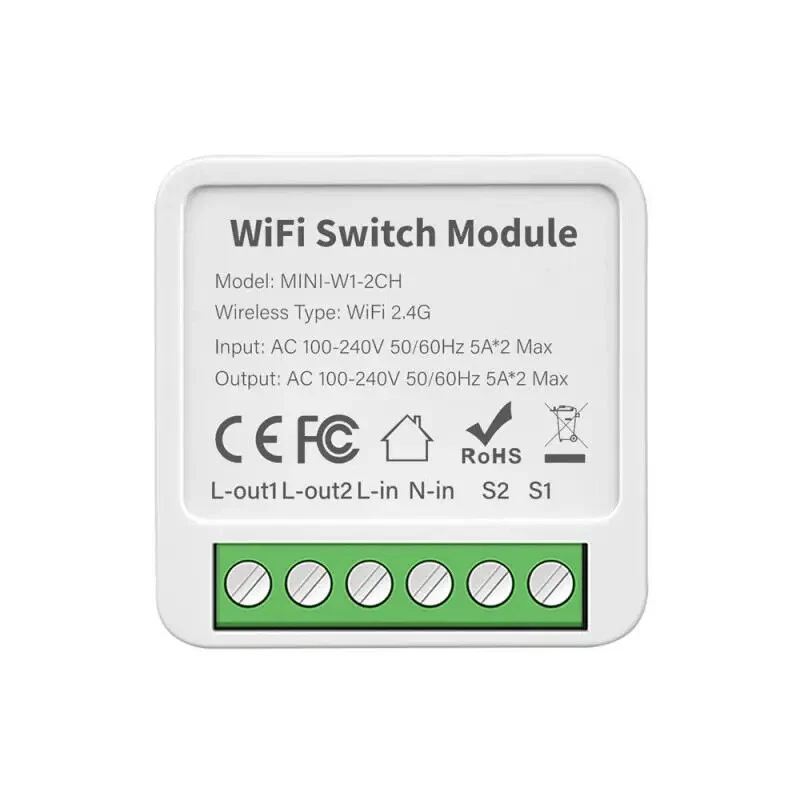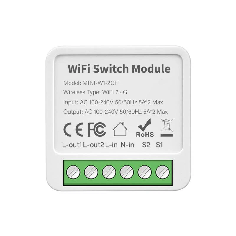 Mini Tuya Smart 2 Gang WIFI Switch Wireless Relay Module Smart Home APP Control Works With Alexa Home , Yandex Alice Description: [ Ultra Mini Size Light Switch Module ] 41X41X22mm ultra mini size body,compatible with 95% of installation box on market.Mini size switch module can be installed in switch installation box or on the lamp easily.(Notice: please turn off electricity during installation). [ APP Remote Control ] -Download smart life /Tuya smart APP on your phone&Tablet to control the light switch anywhere/anytime. [ Hand Free Voice Control ] -Compatible with amazon alexa echo , home Yandex Alice ect ,a simply command to voice control the light switch. [ Timer,Schedule&Count Down Function ] -You can create schedule according to your personal requirement ,as well as timing and count down,smart and your daily life to the maximum extend. [ Dual Way Control ] -Can fully upgrade 2 way control switch without change wiring design of house. [ 3 Switch Type Option ] -Rocker switch flip to change state/state synchronous and self reset switch. [ Status Memory Function ] -switch status when power off and recovery can be set to on,off and keep the same as before power off. [ Interlock Function ] -Enable only channel on,and other channel off at the same time. [ Group-Control Function ] -Multi switch in different room can set in a group ,realize group control function. [ Family Share Function ] -You can share the switch to your family with the limited right,create a smart home together with your family member. [ Linkage Function ] -It can linkage with other switch module ,sensor and appliance in your home ,make create different scene possible,such as sleeping mode,working mode,dinner mode ,back home mode ect. Specifications: model:MINI-W1 Product type :2 Gang/3 Gang/4 Gang WIFI Switch Module Voltage:AC100-240V 50/60Hz Max. load :LED 250W ,5A*2gang/3.3A*3gang/2.5A*4gang Operation Frequency: 2.412GHz-2.484GHz Operation temp. :-10℃ + 40℃ Protocol :WIFI IEEE 802.11b/g/n Operation Range <100m Dimension (WxDxH) :41x41x22 mm IP Rating :IP20 Package Included: 1*Smart Switch Module 1*Instruction