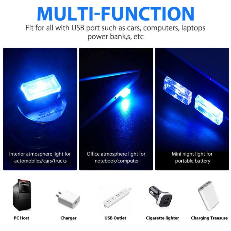 Mini USB LED Light Lamp Car Interior Decor Neon Atmosphere Bulb Car Accessories Features: 1. 100% brand new and high quality. 2. Compact and light weight. 3. Mini size, convenient to carry and store. 4. Soft shade to avoid the direct LED light shine for effective eyesight protection. 5. Flexible body, suitable for many place and occasions such as bedside, desk, indoor and outdoor, just plug and play, easy to use. Specifications: Type: USB LED Lamp Material: ABS Size: 2*1.5*0.8cm Light Color: White,Blue,Ice Blue,Red,Purple,Yellow,Green (please leave us a note about the color you want, without note the color will be random.) Voltage: 5V Package Included: 1x Mini USB LED Light Payment Delivery details Terms of sales About us Contact us Payment - We accept the payment through Paypal only. - Payment must be fulfilled within 7 days after the end of auction. - Please make sure your paypal and ebay address is correct. Or not, please correct it before payment. - Echecks through PayPal need about 5-7 business days to get cleared. We will ship after notification from PayPal on echeck clearance. - If you are a big customer, Please contact with us about the item's PRICE and SHIPPING. - Your feedback & suggestion is deeply appreciated, thanks. Delivery details 1. Please make sure your address in ebay is correct. 2. We will only follow your address listed in the ebay orders for the shipment. 3. Import duties, taxes and charges are not included in the item price or shipping charges. These charges are the buyer's responsibility. Terms of sales 1.You have 7 days to contact us and 30 days to return it from the date it was received. If this item is in your possession more than 7 days,it is considered used and WE WILL NOT ISSUE YOU A REFUND OR REPLACEMENT. There are NO EXCEPTIONS! 2. All returned items MUST BE in the original packaging and you MUST PROVIDE us with the shipping tracking number, specific reason for the return, and your eBay ID. 3. We will refund YOUR FULL WINNING BID AMOUNT, upon receipt of the item in its original condition and packaging with all components and accessories included,AFTER BOTH Buyer and Seller cancel the transaction from eBay. OR, you may choose to have a replacement. 4. Return shipping is to be paid by the Buyer. About us High quality product quality is our aim. Satisfying you is our happiest job. Therefore, we will try our best to provide you with the best products and services according to your requirements and deliver them on time. If we do not make enough improvements or need improvement, please send us an email suggestion. If you like our products and services, please provide us with positive feedback in advance so that we have more confidence and more opportunities to serve more client. Contact us 1. We greatly appreciate your POSITIVE feedback. 2. Negative or Neutral feedback does not resolve any underlying issues that you may be experiencing as a buyer. 3. Any question or unsatisfaction please contact us with ebay message, we will sincerely solve for you. Our Working Time is (GMT+8): 8:00AM -- 5:00PM (Monday to Friday)
