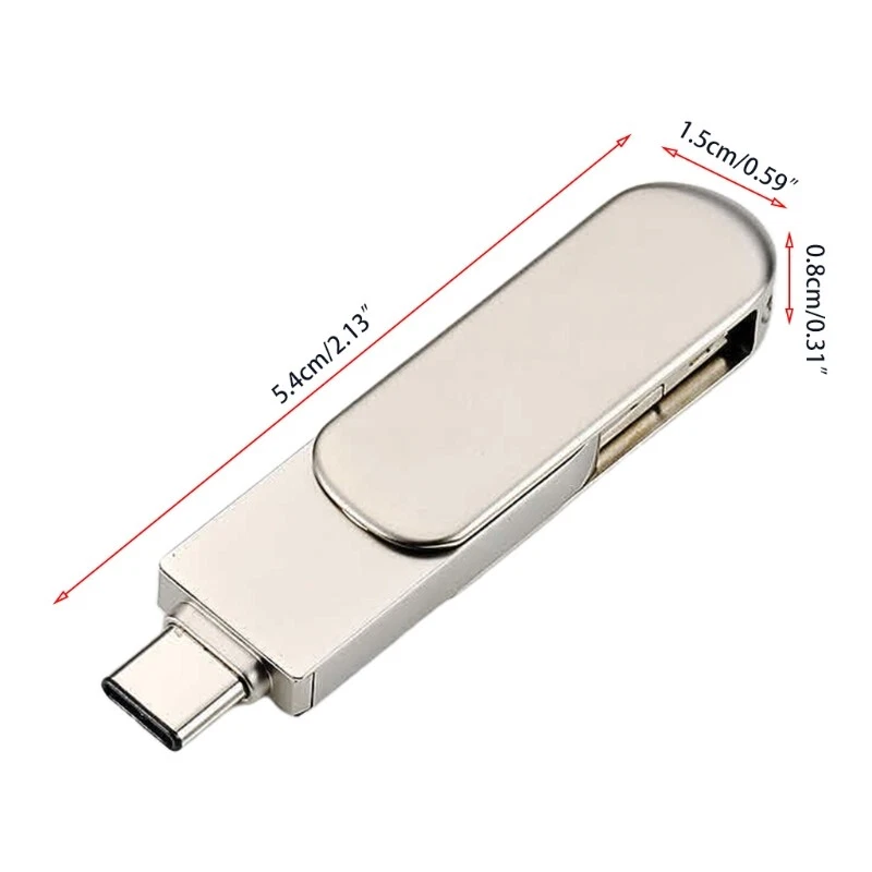 Features: brand new and high quality The USB C 32/64/128GB with the USB and Type-C and android- photo for computer phones. You can easily transfer files and data between smartphones, tablets and computers efficiently save file transfer for time and greatly improve work efficiency. The usb provides up to 30 s-100 s of read speed and 20-80 s of write speed, and allows you to transfer large files from usb less for time. Solid shockproof and electromagnetic. Support various types of operating systems. 360° rotation protecting design that prevent losing, and 90 ° stuck point design avoids the rotates randomly. Specifications: Type: USB/Type C/Android-3 in Disk Material: Metal Color: As Shown Product Type: Disk Size: Approx 5.4x1.5cm/2.12x0.59in Memory:32G/64G/128GB (optional) Package Includes: x Disk note: Due to the problems of lighting effects and shooting angles, there will tolerances in the product, please understand. Please allow 0-1cm error due to the manual measurment.