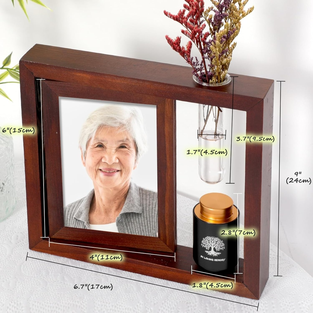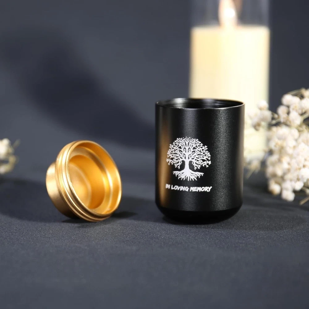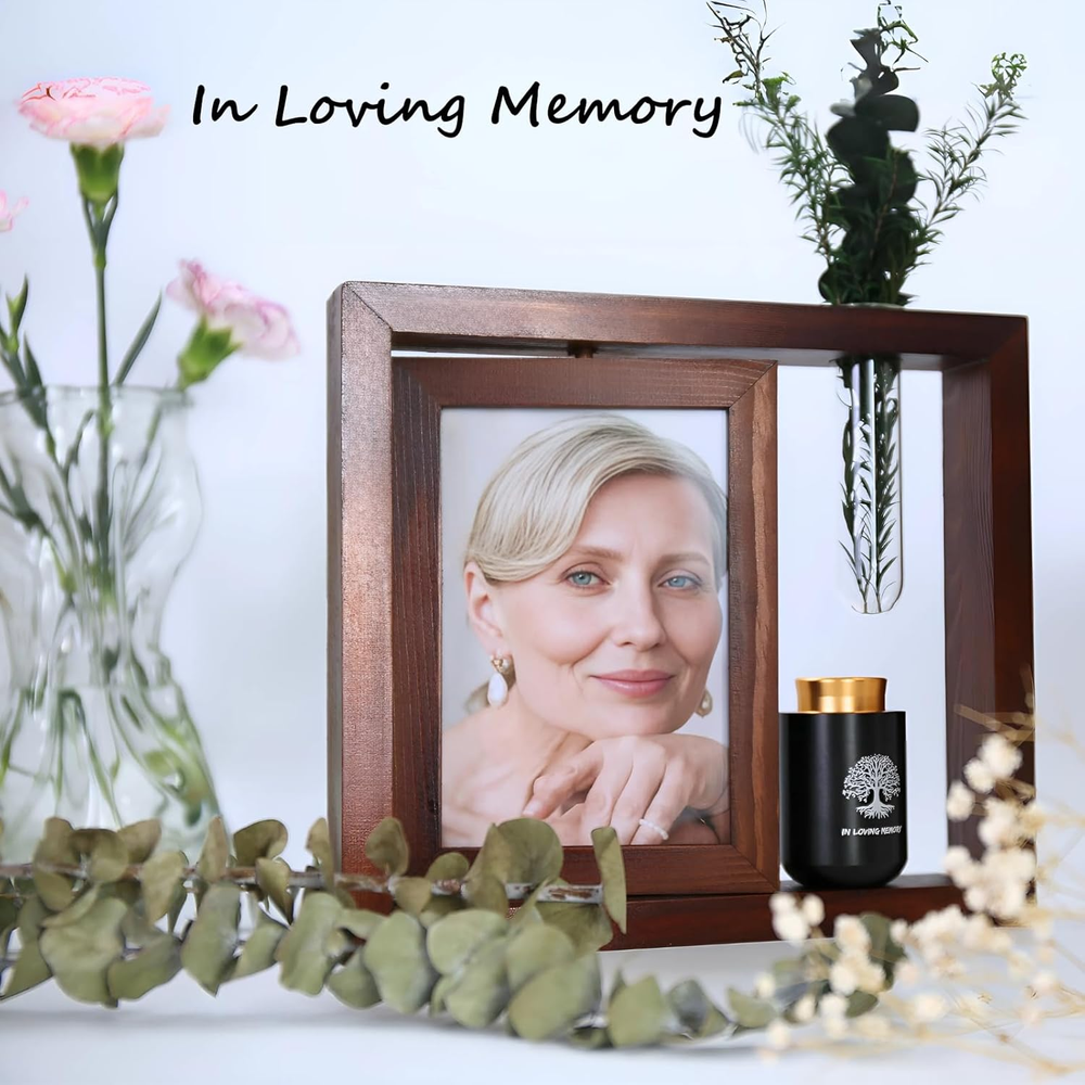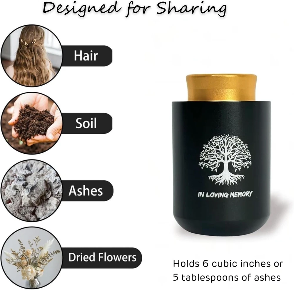 Store New Arrivals Add to Favorite View Feedback Contact Fast deliveries to the customer's home Quality customer service John Make the customers happy! Small Urns for Human Ashes Keepsake with 4X6 Desk Picture Frame & Hydroponics Glass Vase, Memorial Keepsake Urn for Human Ashes, Mini Urns for Human Ashes, Small Urn Cremation Description Elegant Design: This decorative mini urn are adorned with the tree of life motif. The 4x6 photo frame, crafted from a minimalist and stylish iron stand, allowing you to display cherished memories while honoring your loved one. Keepsake Urn - The 1.8*2.8" keepsake urns, , are meticulously sealed to prevent any water ingress or leakage, ensuring utmost reliability. It is designed to hold a small amount (6 cubic inches or 5 tablespoons) ) of ashes, dried flowers, perfume, essential oils, special mementos, a strand of hair, clay, or sand, allowing you to eternally cherish the memory of your loved one. Hydroponics Glass Vase - The glass hydroponic tube measures 1.6 inches in diameter and 4 inches in length. Plant a seed filled with Longing for your loved one. Inscribed on the Urn: In Loving Memory Ideal Memorial Gift: Offer friends and family a meaningful small urn for ashes, an uniquely present. Product Description The video showcases the product in use. The video guides you through product setup. The video compares multiple products. The video shows the product being unpacked. Introduce More ChoiHeiy Urns Add to Cart Add to Cart Customer Reviews 4.8 out of 5 stars 8 4.2 out of 5 stars 6 5.0 out of 5 stars 3 4.7 out of 5 stars 3 Price $33.24 $ 33 . 24 $28.49 $ 28 . 49 $26.99 $ 26 . 99 $9.99 $ 9 . 99 Urn Material Aluminum Aluminum Aluminum Ceramic, Metal Frame Material Wood Wood Iron — Urn Color Black Black Black Six Color Options Comes with Other Contents Glass Vase, Frame Urn Necklace, Frame Glass Vase, Frame Urn Necklace, Box Capacity 5 cubic inches 5 cubic inches 5 cubic inches 5 cubic inches Item model number DU-008BK Capacity 6 Cubic Inches Batteries required No Pattern Dark Wood Item Diameter 2.8 Inches Country of Origin China Item Weight 0.53 Kilograms Color Black Pattern Name Dark Wood Opening Mechanism Threaded Finish types Polished Finish Type Polished ABOUT US We offer the best prices around on high quality products. Our E-store includes media such as books, movies, music and games while offering electronics, toys, sporting apparel, clothing, tools, general home, garden items and more. SHIPPING We are always working hard to ensure your package arrives as soon as possible. Please understand that some factors like weather, high postal traffic, and the performance of shipping companies are outside of our control. We offer free shipping to the lower 48 states and ship within 2 business days of payment, usually sooner. We do not accept P.O. Boxes. Please provide a physical address. For shipping outside of the continental USA, we only use eBay's Global Shipping Program. The item is shipped to KY and then sent to the rest of the world. International customers are responsible for all duties and taxes. Continue to 'check out' to calculate costs for shipping the item to your country. Messages regarding eBay's Global Shipping Program MUST be directed at eBay EXCLUSIVELY. RETURNS We offer a 30-Day Return Policy on items in which you are not completely satisfied with. You have the option of a full-refund or an exchange of the item. No returns are available on items shipped outside of the USA PAYMENT We accept PayPal. CONTACT US This page content is yet to come Please ad us to your favorite seller and visit again later Thank You CUSTOMER SATISFACTION We try our very best to make sure every customer is completely satisfied. If there's a problem, message us! We're happy to help. WE ACCEPT