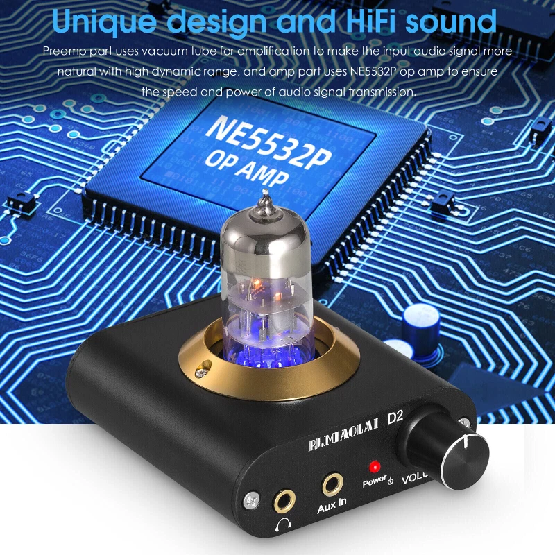 Detail Hight Quality Product Features With 3.5mm AUX input and 3.5mm headphone jack output, can be used as a headphone amp and a stereo preamp, compatible with most audio source such as MP3, ipod, phone, tablet, computer, CD player etc. and output can connect headphone, amplifier, active speaker etc. to greatly improve the sound quality. Adopting classic 6N3 vacuum tube(much better than 6J*) to effectively eliminate the harsh digital sound, providing HiFi clear, soft and smooth, warm and sweet tube sound. The sound field is wide, especially suitable for vocals, strings, light music, classical music, etc. Adopting solid state design, preamp part uses vacuum tube for amplification to make the input audio signal more natural with high dynamic range, and amp part uses NE5532P op amp to ensure the speed and power of audio signal transmission. Super mini size and exquisite appearance, looks elegant and attractive. All-aluminum chassis, with power indicator and volume control, convenient to use and perfectly suitable for your desktop or a smaller space in your home or office. Parameters Audio input: 3.5mm AUX Audio output: 3.5 headphone jack Output power: ≥ 110 0mW (32Ω) Matched headphone impedance: 18-600Ω Frequency response: 20Hz-30KHz THD: <0.005% SNR: ≥110dB Working voltage: DC 12V Dimensions(W*D*H):71*74*24mm / 2.80*2.91*0.94in (not include knobs) Package dimensions(W*D*H): 260*200*80mm / 10.24*7.87*3.15in Net weight: 113g / 0.25lb Package weight: 315g / 0.69lb Packing List 1*D2 Headphone Amplifier 1*6N3 Tube 1*Power Adapter Payment 1.We accept PayPal only. 2.All major credit cards are accepted through secure payment processor PayPal. 3.Payment must be received within 7 business days of auction closing. 4.We ship to your eBay or Paypal address. Please make sure your eBay and Paypal address is correct before you pay. Shipping 1.We ship to your eBay or Paypal address. Please make sure your eBay and Paypal address is correct before you pay. 2.Items will be shipped within 1-5 business day when we received payment. 3.It usually takes about 10-30 working days to arrive for economy shipping which not including tracking number; 7-15 working days for standard shipping which including tracking number. Transit time may be a little delayed because of the bad weather and customs inspection. If you do not receive your item within 30 working days since payment finished, please contact us immediately for further assistance. Note: It may takes more than 30 working days to other countries such as Mexico,Brazil,Chile,Peru, because they is far away from China. 4.International buyers please note: a.Import duties, taxes and charges are not included in the item price or shipping charges. These charges are buyer’s responsibility. We will try our best to reduce the risk of the custom duties. b.Please check with your country's customs office to determine what these additional costs will be prior to buying. About Us 1.All Mails will be replied within 48 hours ,except weekend. 2.If you are dissatisfied for any reason, please contact us before leaving feedback,we do our best give a satisfied solution.
