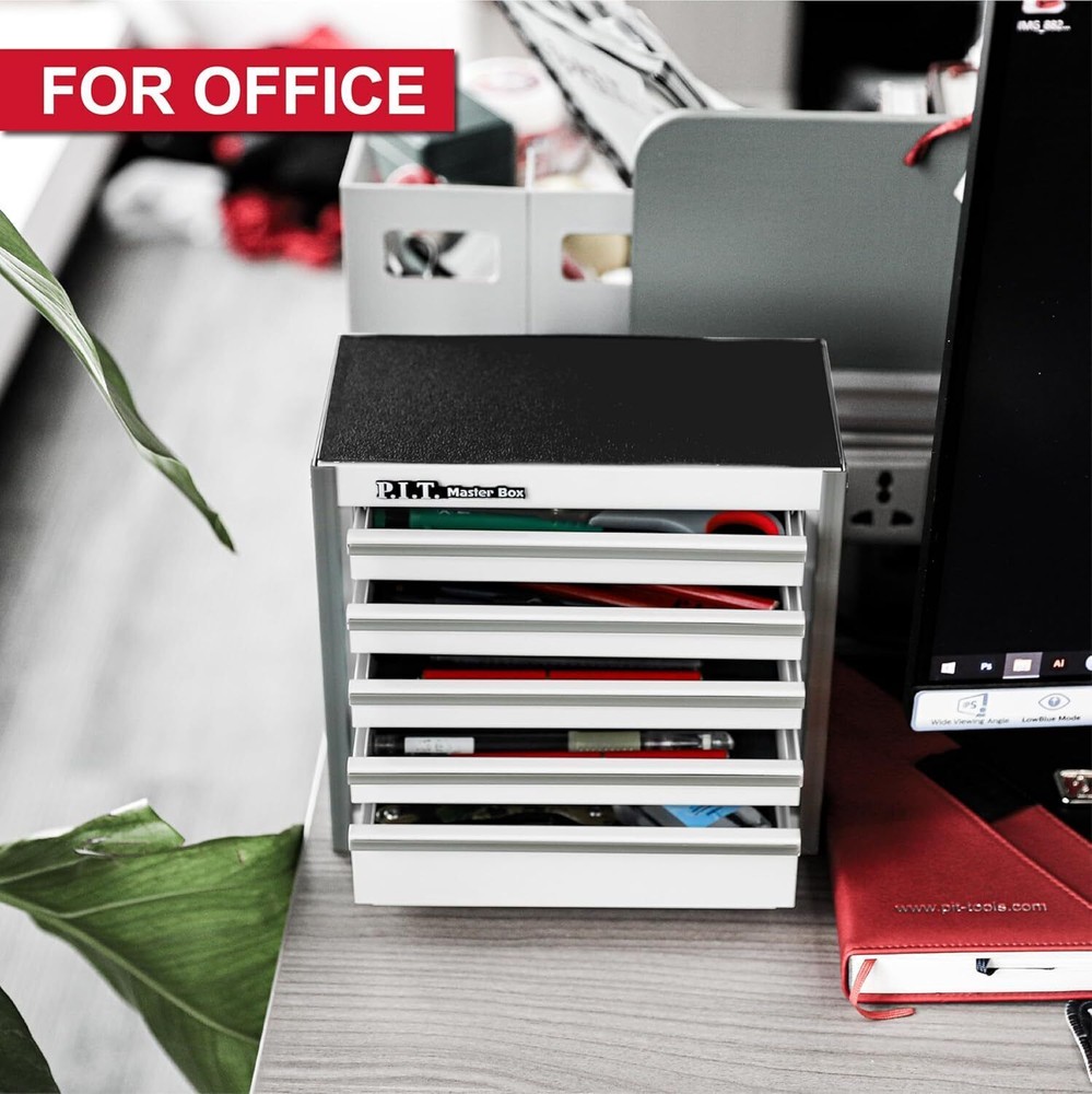 Multiple Storage Mini Tool Box - 8.6 X 4.6 X 7.9 Inches, lightweight and portable design, suitable for your day use. You can also match the top chest to use together or separately. Please check the size before you place an order. It's a small box, if you mind, please don't buy it Wide Application - Strong function for home, office, warehouse, jobsites and so on. The micro tool box is suitable for storing small tools and accessories storing various parts like business cards, pens, pencils, paper clips, and much more Anti-Slip Pads Design - There are 4 anti-slip pads on the bottom of the box to be stable Ball Bearing Slide 5 Drawers - 5 drawers are equipped with smooth ball bearing slides which provide a smooth glide operation Equip with Liner - Provides protective moisture barrier between tools and drawer, and protect your tools from rust High Quality Material - This tool box is made of high quality Q235 steel for long-lasting durability. The surface is covered with powder white paint finish, which is beautiful and easy to clean On Feb 19, 2025 at 00:11:32 PST, seller added the following information: