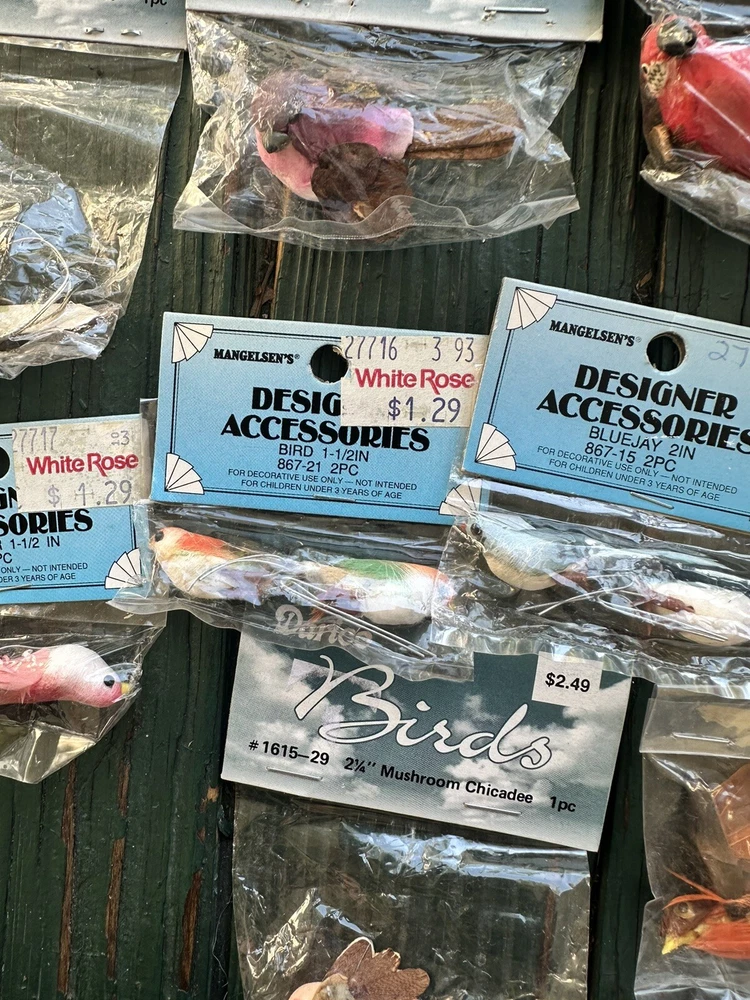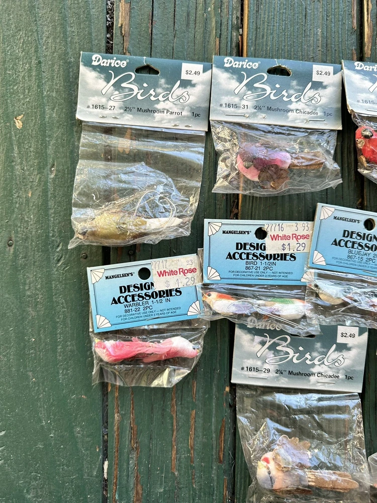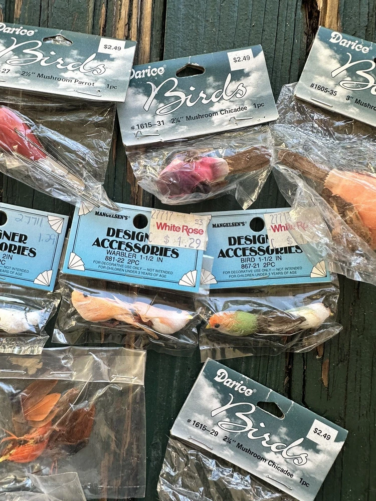 Material:Foam and FeathersType:BirdsNumber of Pieces:2Antique:NoBrand:Darice and MangelsensVintage:YesUnit of Sale:LotSet Includes:19 BirdsColor:Multicolor