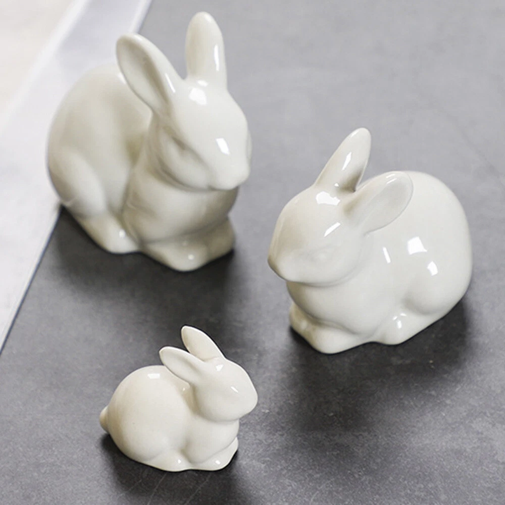 Miniature Ceramic Rabbit Ornament Sculpture Statue Decor Crafts Figurine Decor