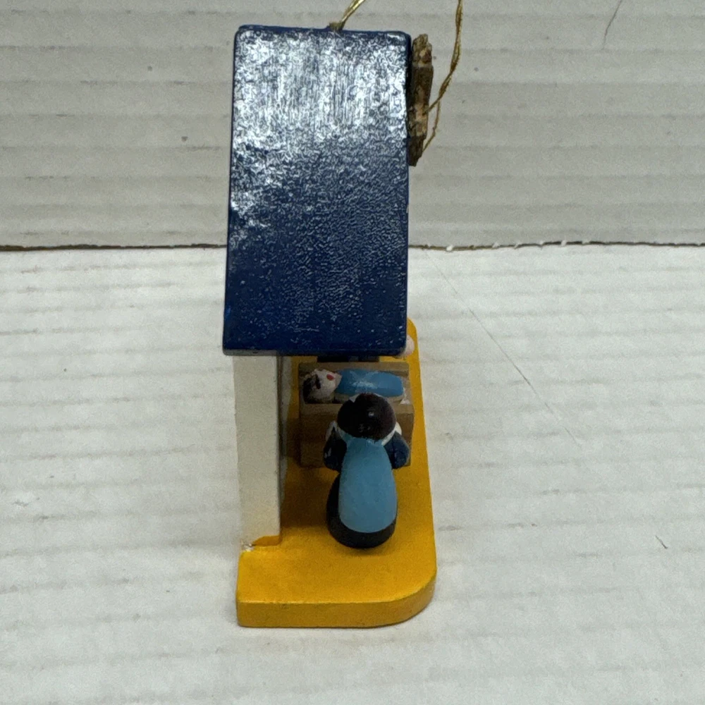 Miniature Wood Nativity Scene Ornament Vintage painted