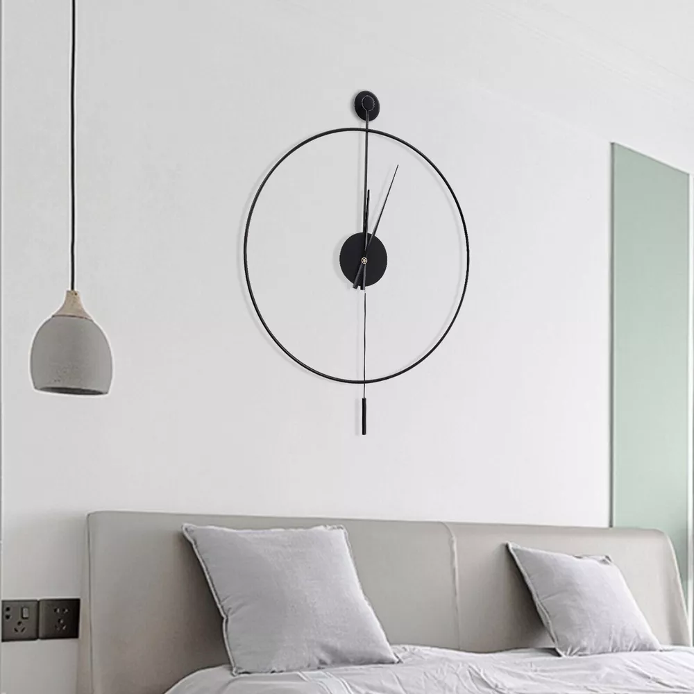 Minimalist Wall Clock Round Home Clock Silent Large Modern Art Decor Home 23.6'' Classical Large Decorative Wall Clock with Pendulum, Modern Non-Ticking Silent Metal Wall Clocks for Living Room, Bedroom, Study, Office, 23.6" (Black) Description Are you frustrated with the old wall clock at home that keeps ticking? Do you want a quiet, stylish, and durable wall clock? With its high-quality silent movement and metal hands, this wall clock allows you to enjoy every second of silent dreaming. If you are tired of boring walls or want to have more fun in life, then this unique clock will be your ideal choice! Key Features High-quality Materials: This wall clock is made of high-quality iron, which is wear-resistant and durable, ensuring a longer service life. Baking Paint Process: The metal surface is baked lacquered to give it a brilliant and colorful appearance and prevent it from fading. It is also anti-corrosive and rust-proof, prolonging its service life. Low Noise: The clock features a silent quartz movement that runs smoothly and without harsh ticking sounds. It will keep your family free from noise and ensure a good and comfortable night's sleep. Accurate Timekeeping: It is equipped with a high-quality silent quartz movement that runs steadily to guarantee accurate timekeeping, giving you a better user experience. Unique Design: The hollow design of this wall clock highlights a mysterious, elegant and minimalist style. This wall clock can match many modern style home decorations and it can add a distinctive touch to your home. Great Gift Choice : This exquisite wall clock is an ideal gift for parents, friends, teachers, leaders and relatives. It will be the most practical and memorable gift they will ever receive. Time Witness: The wall clock records every second of the warm moments you spend with your family. It is the witness of your good memories. Easy to Clean: It is finished with a baked-on lacquer which gives it a smooth, flat surface for easy cleaning. You can easily wipe off dust and stains with a damp rag. Easy to Install: There are reserved a hanging slot on the back of the base for easy installation. You only need a few simple steps to complete the installation. Excellent After-sales Service: We aim to provide quality products and services. If you have any problems, please feel free to contact us, and we will reply and solve the problem for you as soon as possible. Details Dial Without Numbers: The dial of this wall clock does not have numbers, making the wall clock more simple and generous overall. Metal Pointers: In contrast to plastic pointers, metal pointers are not only stylish and beautiful but also durable and resistant to breakage. Unique Pendulum: The pendulum design on the wall clock is a decorative element and also adds a touch of energy to a quiet space. Application This wall clock is suitable for the living room, hallway, office, study, bedroom, dining room, hall, exhibition hall, and other occasions. It is also an ideal gift choice for your friends or your family. Installation 1. Determine the position of the non-marking nails. 2. Fix the non-marking nails with a hammer. 3. Align the hooks and hang the wall clock. 4. Complete the installation. Specification Material: Iron Pointer Material: Aluminum Color: Black Style: Modern Shape: Round Surface Treatment: Baking Paint Power Source: Battery Powered Number of Batteries Required: 1*AA Battery(Not Included) Mounting Type: Wall Mount Operation Mode: Silent Quartz Movement Base Diameter: 7cm/2.76in Dial Diameter: 60cm/23.6in Packing Size: 63*7.3*64cm/24.8*2.87*25.19in Net Weight: 1.2kg/2.64lbs Gross Weight: 1.4kg/3.08lbs Package Included 1* Wall Clock 1* Base 1* Pendulum 1* Non-marking Nail 2* Long Screws Notes Please do not use too many alkaline power batteries, which affect the life of the movement and sometimes even the accuracy of the timekeeping. Please note that the package does not include a AA battery, so you need to purchase them separately. Please allow the slight color difference caused by the shooting light and 1-3 cm error due to manual measurement, and make sure you do not mind before ordering. Payment Delivery details Terms of sales About us Contact us Payment We accept ebay payment 。 Fees such as import duties, taxes are not included in the item price or shipping costs. These charges are the buyer's responsibility. Delivery details Shipping: 2-9 working days to: USA Terms of sales We maintain high standards of excellence and strive for hundred percent customer satisfaction. Feedback is very important to us. We hope that you contact us immediately before you give neutral or negative feedback, so that we can address your concerns. It is impossible to address issues if we do not know about them! About us Your satis faction is our ultimate goal. We work hard to earn your trust and future business. Our certified technicians have tested each item before shipping. The unit comes with 1 year limited warranty on all manufacturing defects. a) If you receive a defective item, you may return it or ask for a discount. Please contact us within 14 days after you receive the package. b) What you returned must be intact and in its original packaging as re? u. Customer is responsible for shipping costs of the returned item. c) We will cover the cost of shipping back t with the shipping rate indicated in the registration page. We will send you a new unit or refund the full payment you paid. Thank you. Contact us Business Hour Business Hour: Monday To Friday: 8:30 AM to 5:00 PM (Beijing China time) Due to time zones, our reply to your questions may not be immediately. But within above working time, we will reply your email within 24 hours. If it's non-workdays, please kindly be patient and wait till Monday. Please contact us with ebay message. Please feel free to contact us if you have any questions. Monday To Friday: 8:30 AM to 5:00 PM (Beijing China time) Due to time zones, our reply to your questions may not be imme