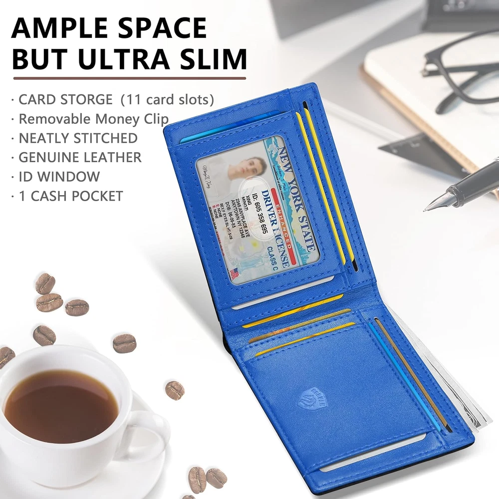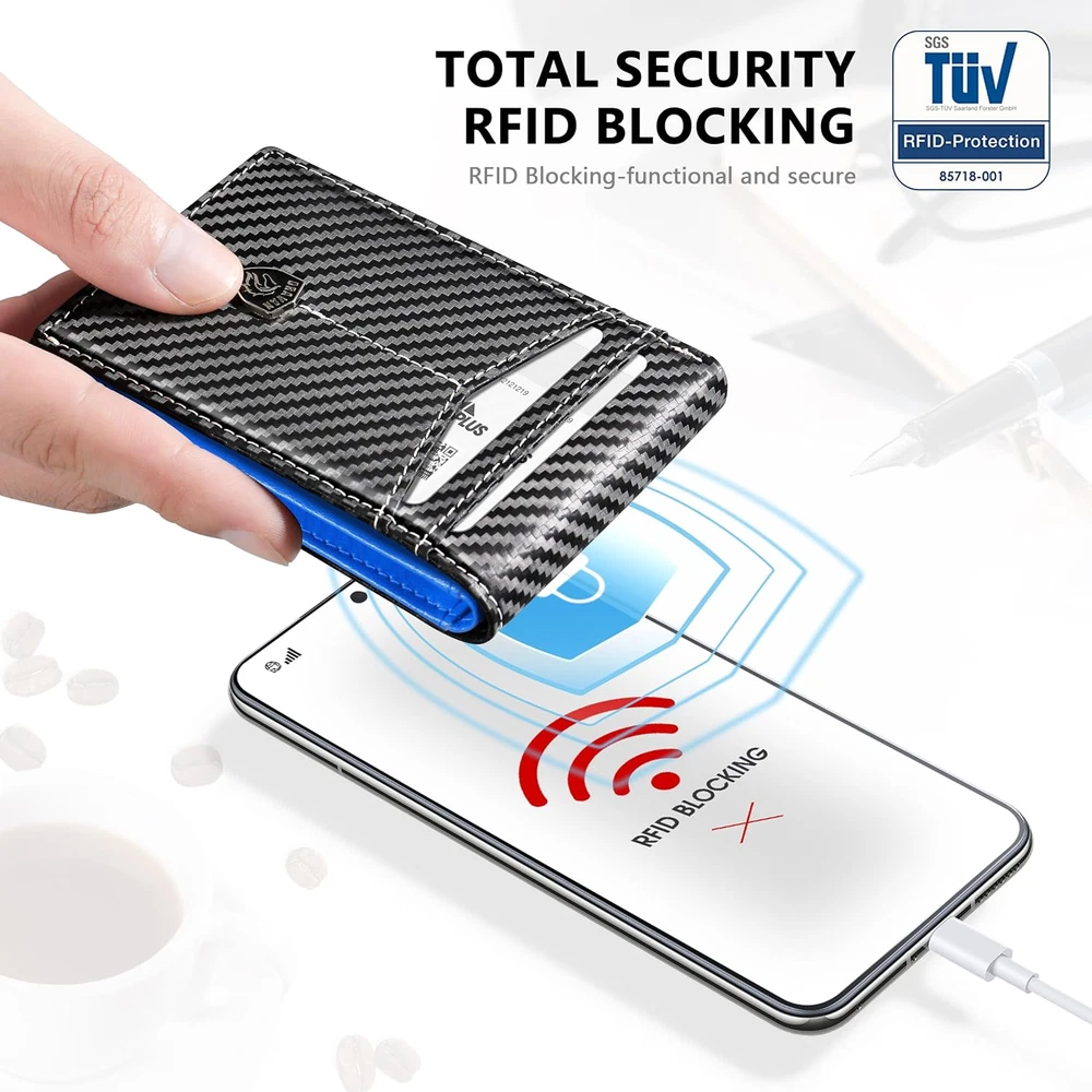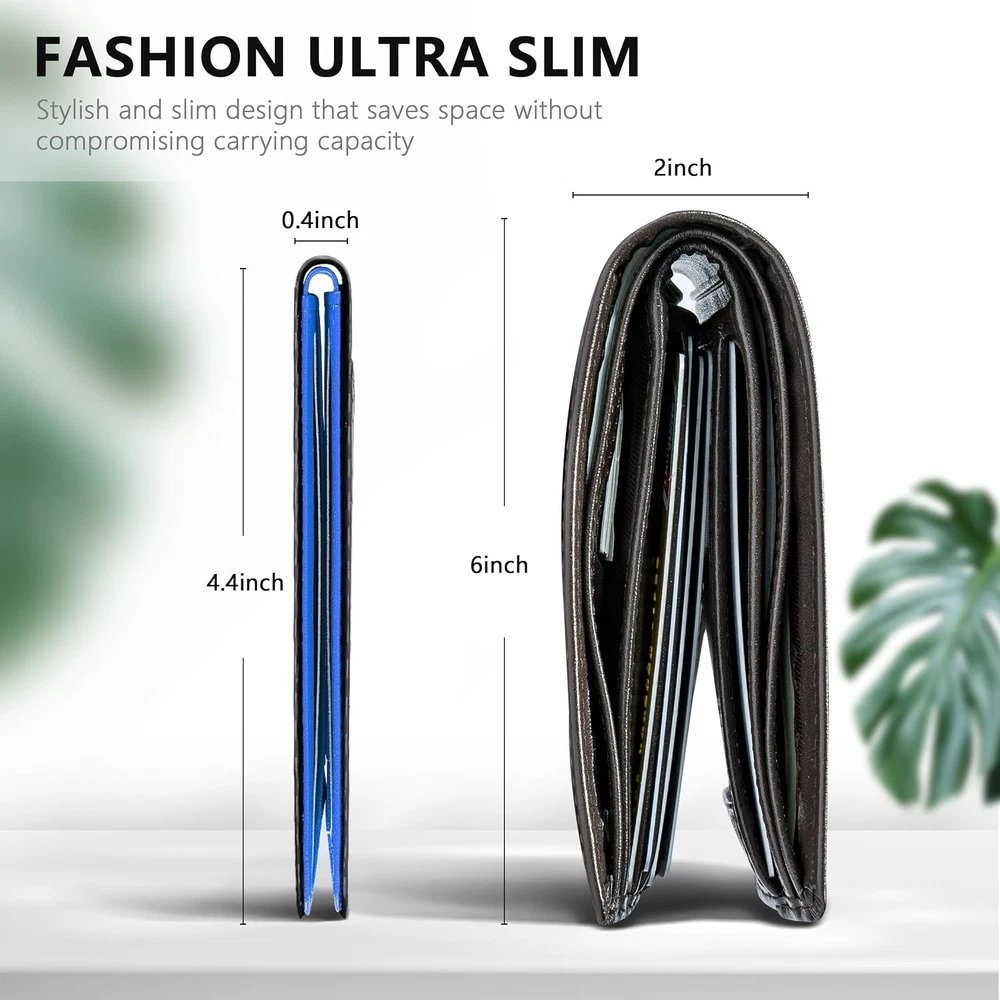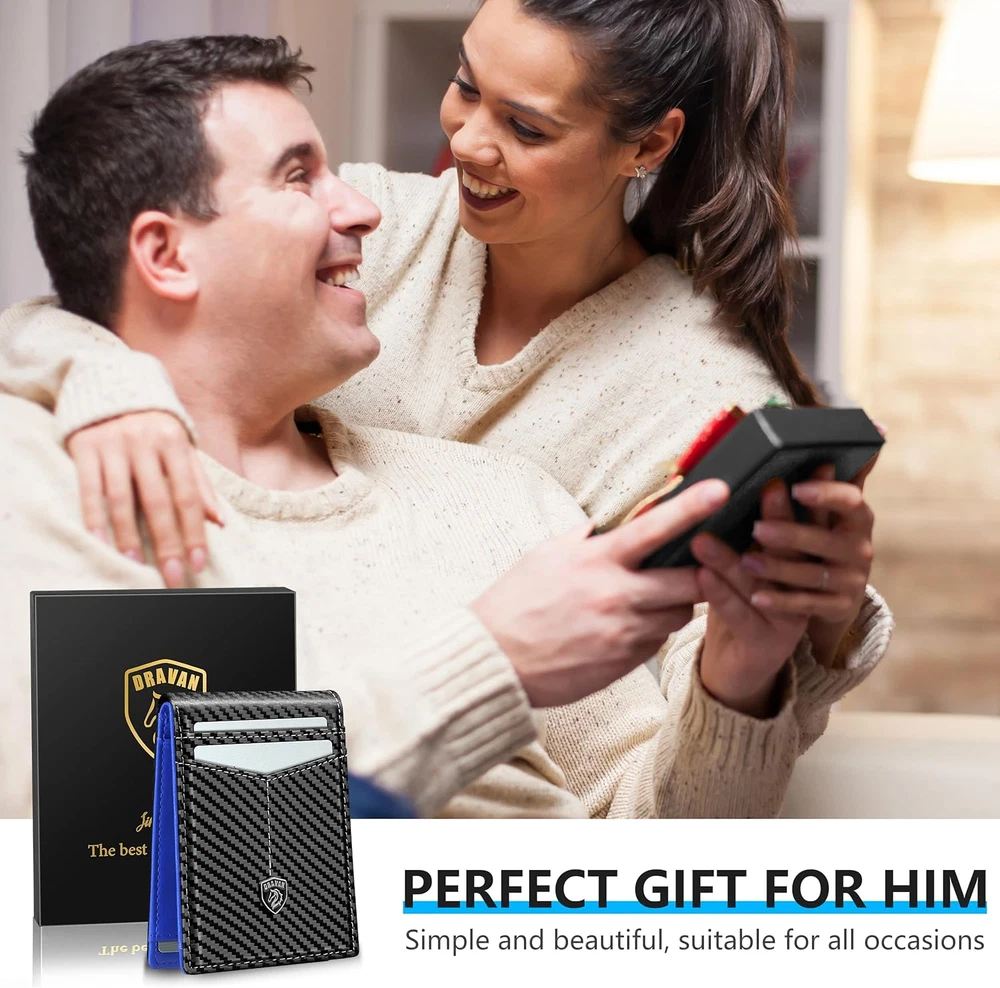 【Ultra-thin】: This slim Minimalist wallet being 0.4 inches. Even if the GSOIAX wallet is full of cards and bills, its thickness is only about 0.8 inches. It will fit in your pocket perfectly without bulging out. 【CLASSIC STYLE AND SLIM DESIG】 This wallet has 1 cash pocket and 12 available card slots. The outside notch allows you to push out the cards easily.Perfect for carrying all debit, credit and all other cards.meet your everyday needs. 【HIGH QUALITY MATERIALS】GSOIAX men's wallet is made of finest leather and carbon fiber, Using classic patterns, clean lines, hand-stitched finish, made to last.Even if you friction it many times, it will not be easily damaged. 【RFID BLOCKING】Each wallets are equipped with German institute certified advanced RFID security Technology. Its built-in unique metal composite material can completely block RFID signals of 13.56 MHz or higher,Your credit cards,ID cards and Cards for other RFID chips will be protected effectively.preventing any unauthorized scanning and theft. 【GIFT BOX PACKAGING】This slim wallet comes in nice gift box packaging,it is a perfect present for Thanksgiving,birthday,anniversaries, Fathers Day,Valentine's Day,Christmas to your boyfriend,husband,dad,friends. Contact us anytime via Your Orders if you have any questions. We’ll respond within 24 hours. 0.1