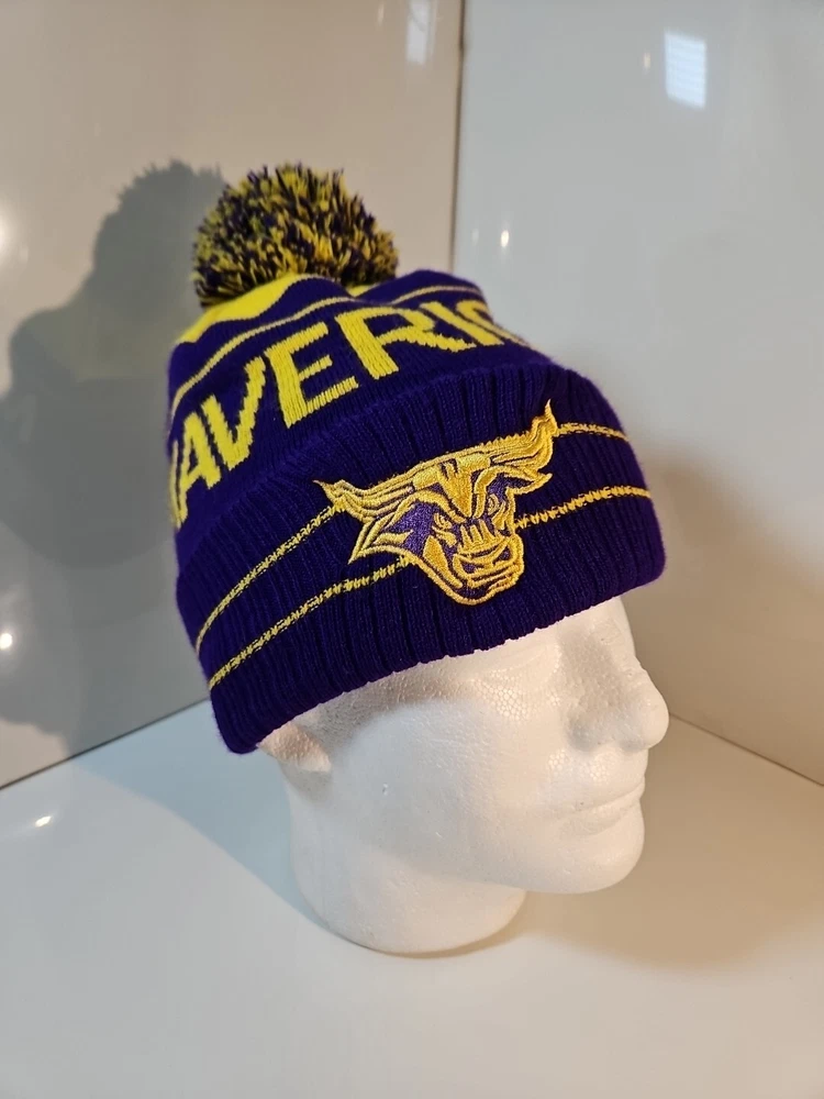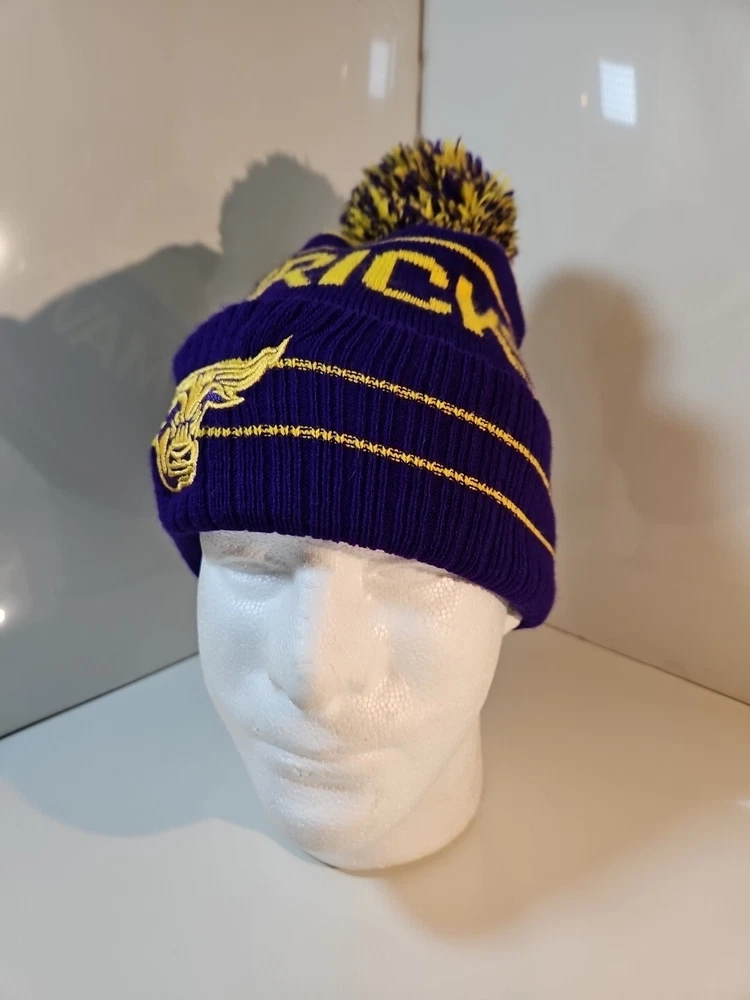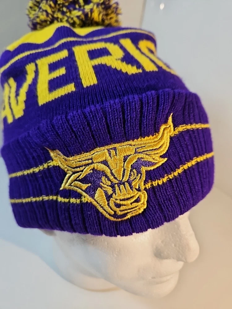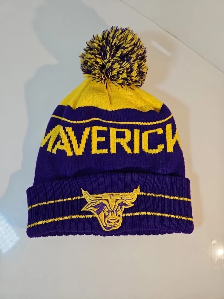 Minnesota Mavericks NCAA Beanie Cap Winter Pom Purple GOLD BULL LOGO GUC