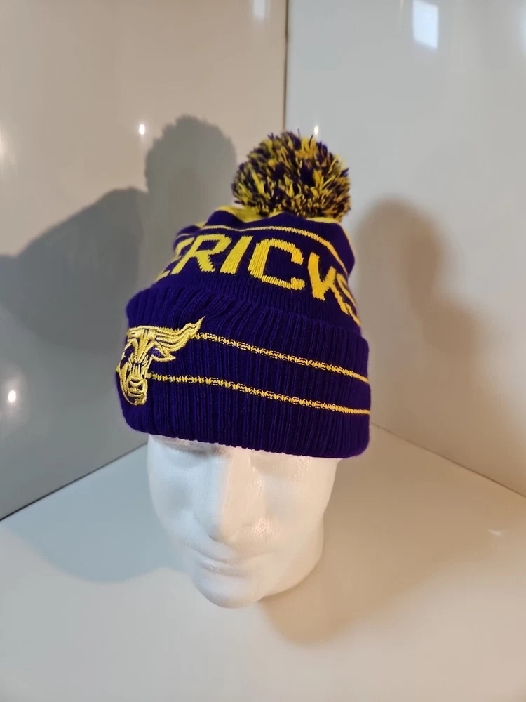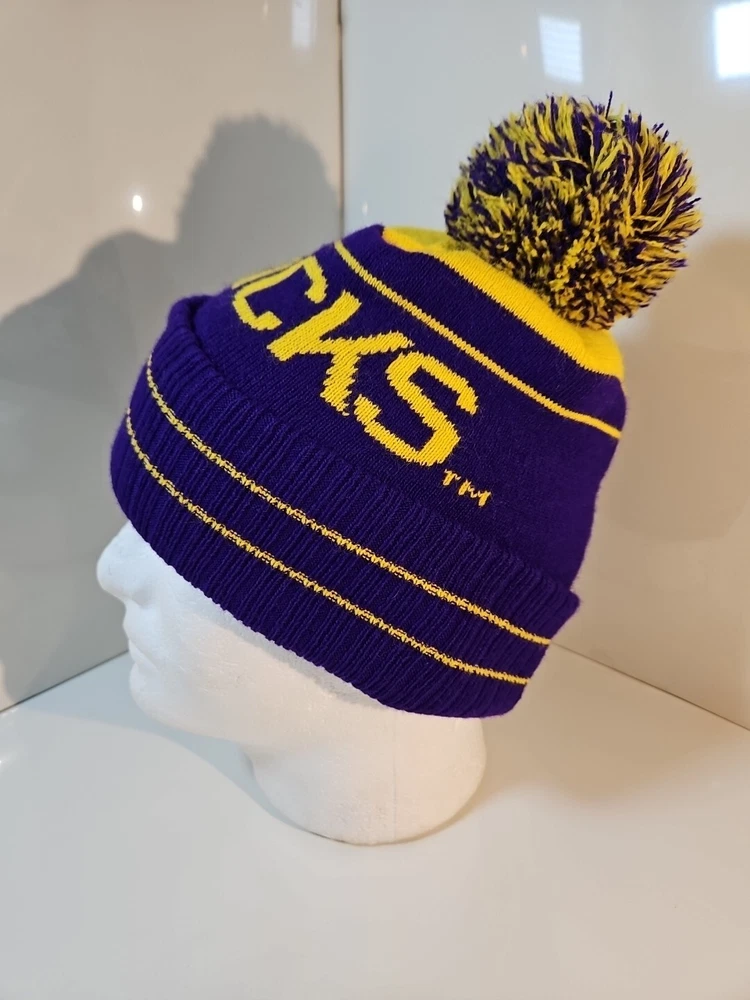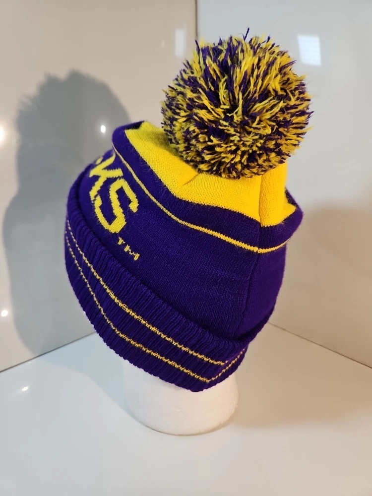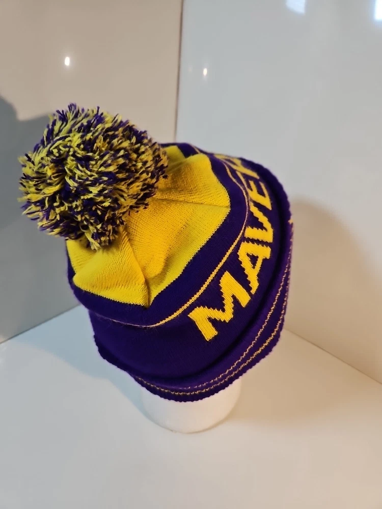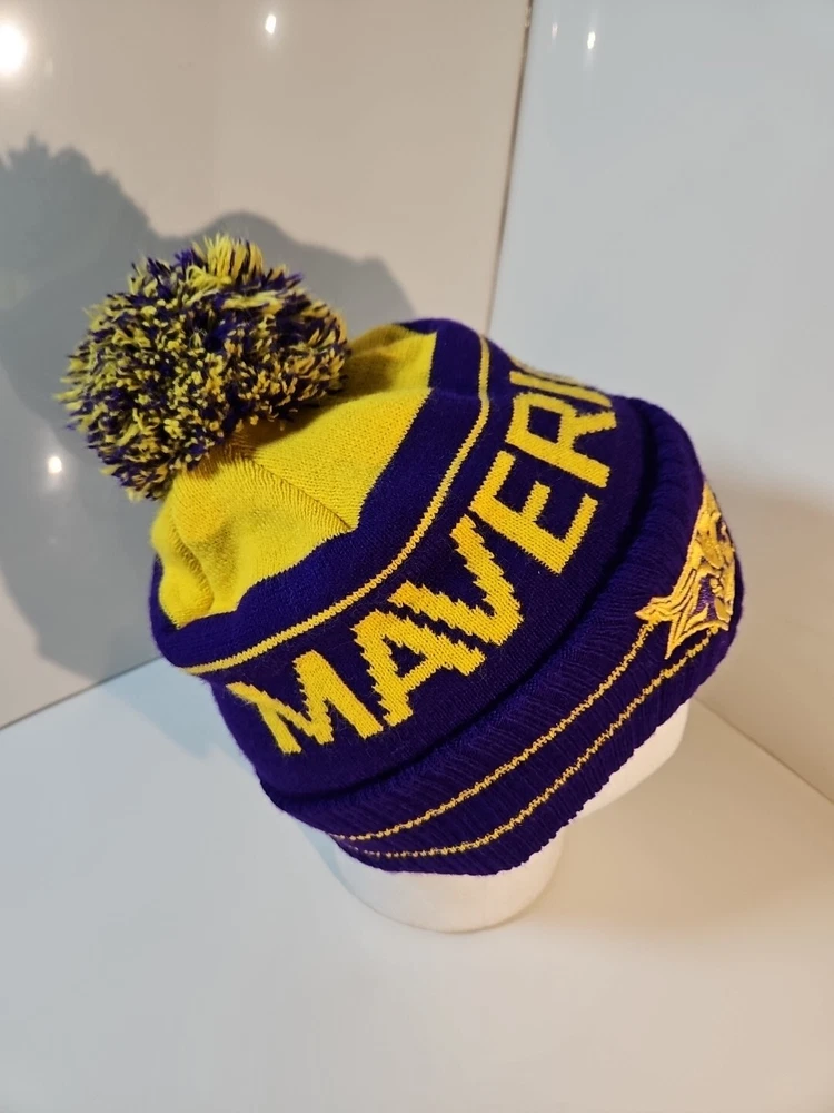 Minnesota Mavericks NCAA Beanie Cap Winter Pom Purple GOLD BULL LOGO GUC Product will be shipped timely and packaged with care. Offers are encouraged. Please feel free to reach out with questions. Please see pictures. Thank you. Good used condition. Light wear from age and use. Markings from age and use. See pictures Show your support for the Minnesota Mavericks with this stylish and cozy beanie cap. The cap features the team's iconic gold bull logo on a purple background, making it the perfect accessory for any fan of the team. It is made by the trusted brand Traditions and is designed to fit most people with its one size fits all size. This cap is perfect for basketball games or just everyday wear. It is made of high-quality materials to ensure that it lasts for a long time. Get your hands on this must-have accessory for any Minnesota Mavericks fan today! Hc1bb
