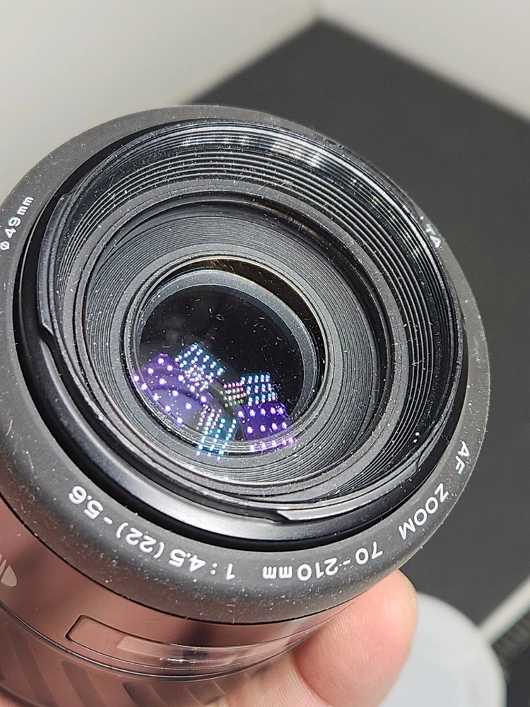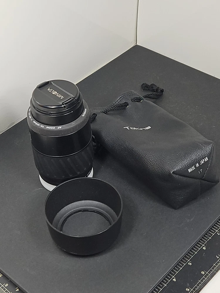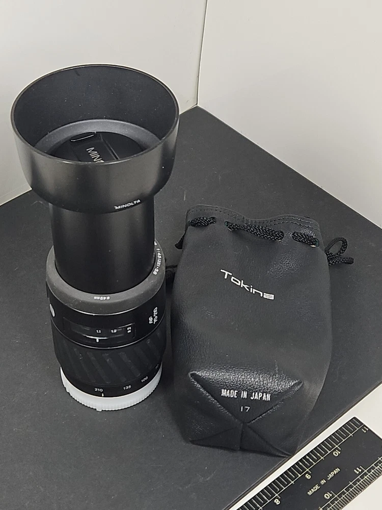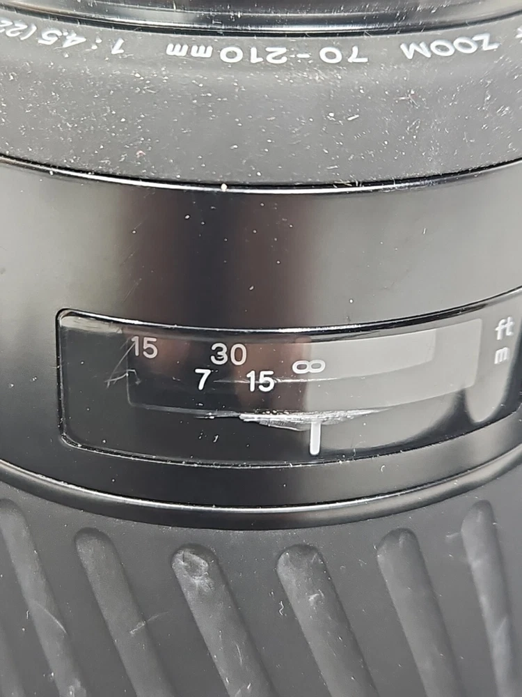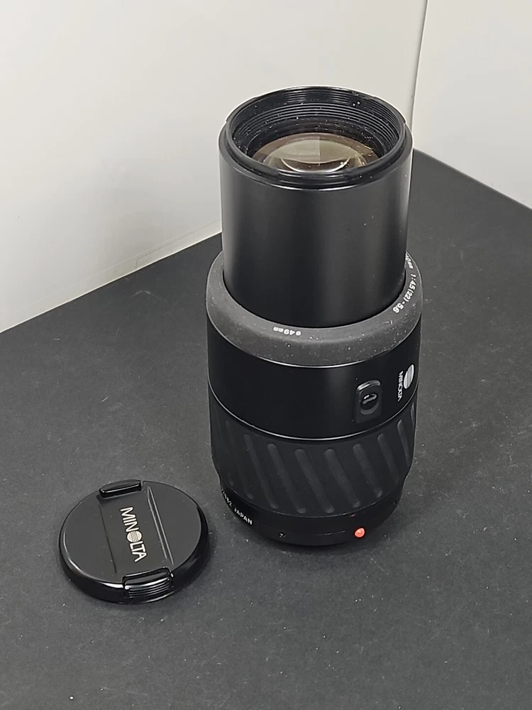 Minolta AF 70-210mm 1:4.5-5.6 Zoom Lens for Minolta Sony A Mount DSLR Hood Case Please see pictures to determine product quality. Padded cinch Case and Lens hood included. Marks from age and use. See pictures. Small fracture in dial window. Product will be shipped timely and packaged with care. Offers are encouraged. Please feel free to reach out with questions. Please see pictures. Thank you. Good used condition. Light wear from age and use. Markings from age and use. See pictures The Minolta AF 70-210mm f/4.5-5.6 Zoom Lens is designed for Minolta and Sony A-mount DSLR cameras. It features a telephoto focal length range of 70-210mm with both auto and manual focus capabilities. This versatile lens is ideal for capturing a wide range of subjects with its zoom functionality. E2