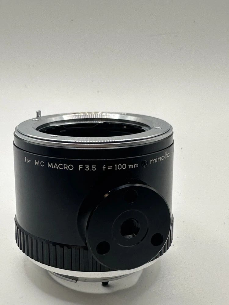 Elevate your macro photography with the Minolta Extension Tube Ring, designed specifically for the Minolta MC 100mm f/3.5 lens. This extension tube ring is an essential accessory for photographers looking to get closer to their subjects without compromising on image quality. The tube ring is meticulously crafted to maintain manual focus, ensuring sharp and precise image capture. Its sleek black finish not only adds aesthetic appeal to your camera gear but also complements the distinguished Minolta brand legacy. Ideal for various shooting scenarios, this extension tube ring is a versatile addition to any photographer's toolkit.