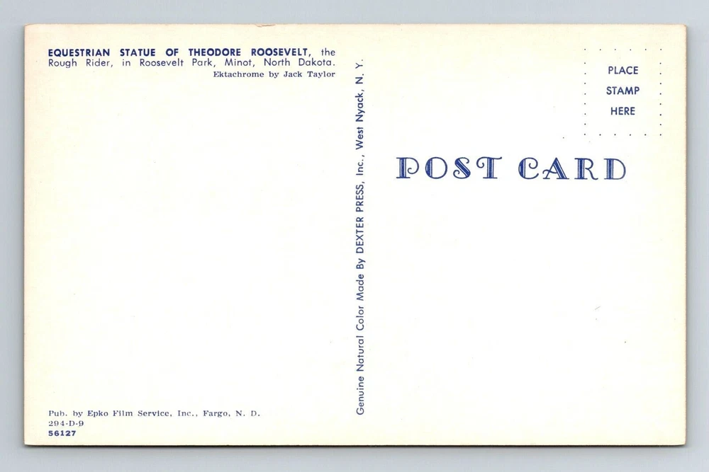 Minot ND-North Dakota, Equestrian Statue Roosevelt, Vintage Postcard