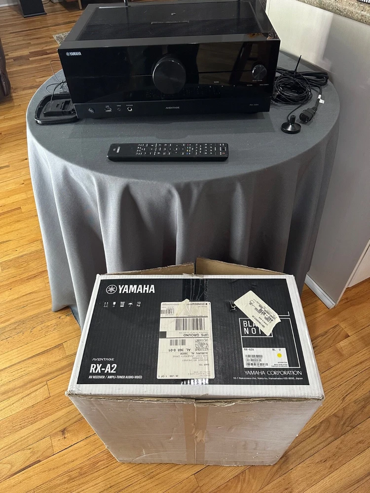 RX-A2A AVENTAGE 7.2-Channel AV Receiver with 8K HDMI and MusicCast Nothing wrong with it and works well. NO SCRATCHES and cat hair in picture due to wife's cats. FYI Works great with app on phone and solid performer. Registered on day one so has 5 year Yamaha warranty still in effect. Sounds great but downsizing my setup to just a soundbar and got older. Works perfectly with no scratches or dents or damage. Did factory reset before putting back in box. The bass it outputs via LFE is very loud with good subwoofer. Sounds good too with reliable clean Yamaha sound. Take your entertainment to the next level. With professional quality video and immersive surround sound via Dolby Atmos®, the RX-A2A will completely transform home cinema. 7.2-channel 100 Watt surround sound with Zone 2 4K60, Dolby Vision ™ , Hybrid-Log Gamma and BT.2020 4K120 AB and 8K60 B HDMI ™ and HDR10+ with HDCP 2.3 and eARC (7 in/1 out) Supports enhanced media and gaming – ALLM and VRR Dolby Atmos ® , DTS:X ™ and Dolby Atmos Height Virtualization Wi-Fi ® , AirPlay 2 and Spotify Connect Voice Control with Alexa, Google Assistant and Siri ® MusicCast App control Pandora ® , Spotify, Amazon Music, SiriusXM, TIDAL, Deezer and more YPAO automatic room calibration with R.S.C. and multipoint Phono input