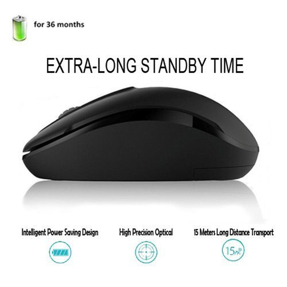 ★ SAVE POWER & LONG BATTERY LIFE -- Newest low-power technology and top chip could save power 5 times than normal ones. Say goodbye to the troubles of replacing battery frequently. The INCLUDED battery is expected to last 3-6 months. If it is out of power, what you need to do is only replace it, and then you could continue to use the mouse as normal ★ 2.4 G & 1600 DPI -- With 2.4 G wireless technique, it could to be connected within 10 meters/ 30 ft. Please try to keep the least obstacles between the mouse and the USB transmitter if you intend to use it by a long distance. Precise optical engine with 1600 DPI tracking positioning could provide you wonderful and amazing experience ★ COMFORTABLE ALL-DAY-LONG -- Symmetric design allows to use by right hand, as well as left one. Ergonomic design makes you feel extremely comfortable, especially for long-time use. With comfortable contour design, your wrist will never not be fatigue or painful any more ★ TINY USB RECEIVER -- Be hidden in the bottom of the mouse, the USB transmitter could be kept in the USB interface of your computer all the time, or be inserted into the bottom of the mouse when you won’t use it for a long time. Minimize the number of unplugging USB could avoid USB damage effectively and extend the service life of the mouse ★ INTELLIGENT SLEEP MODE -- With NO SWITCH and NO LIGHT Save-power Design, it will be in sleep mode automatically within 5 minutes when you don’t move it, and will be activated smartly by moving it or click the button of the mouse. What’s more, it’s normal to see no red indicator light at the bottom during the usage.