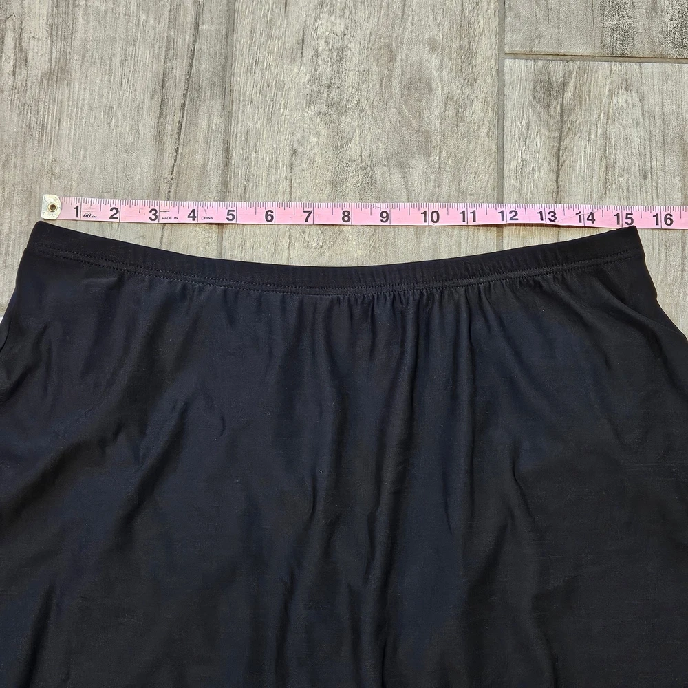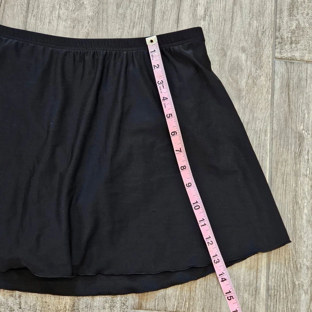 Miraclesuit Swim Skirt Bottom Womens Size 16 Black Full Coverage Slimming Shape Silky skirted swim bottom has a full coverage panty underneath that slims and shapes covered by a floaty skirt. By Miraclesuit®: Look 10 pounds lighter in 10 seconds®. Due to the high spandex content, you may want to order one size up. Elasticized top edge Full coverage. Measurements are included in the photos Excellent Pre Owned Condition Bundle for a discount or send an offer
