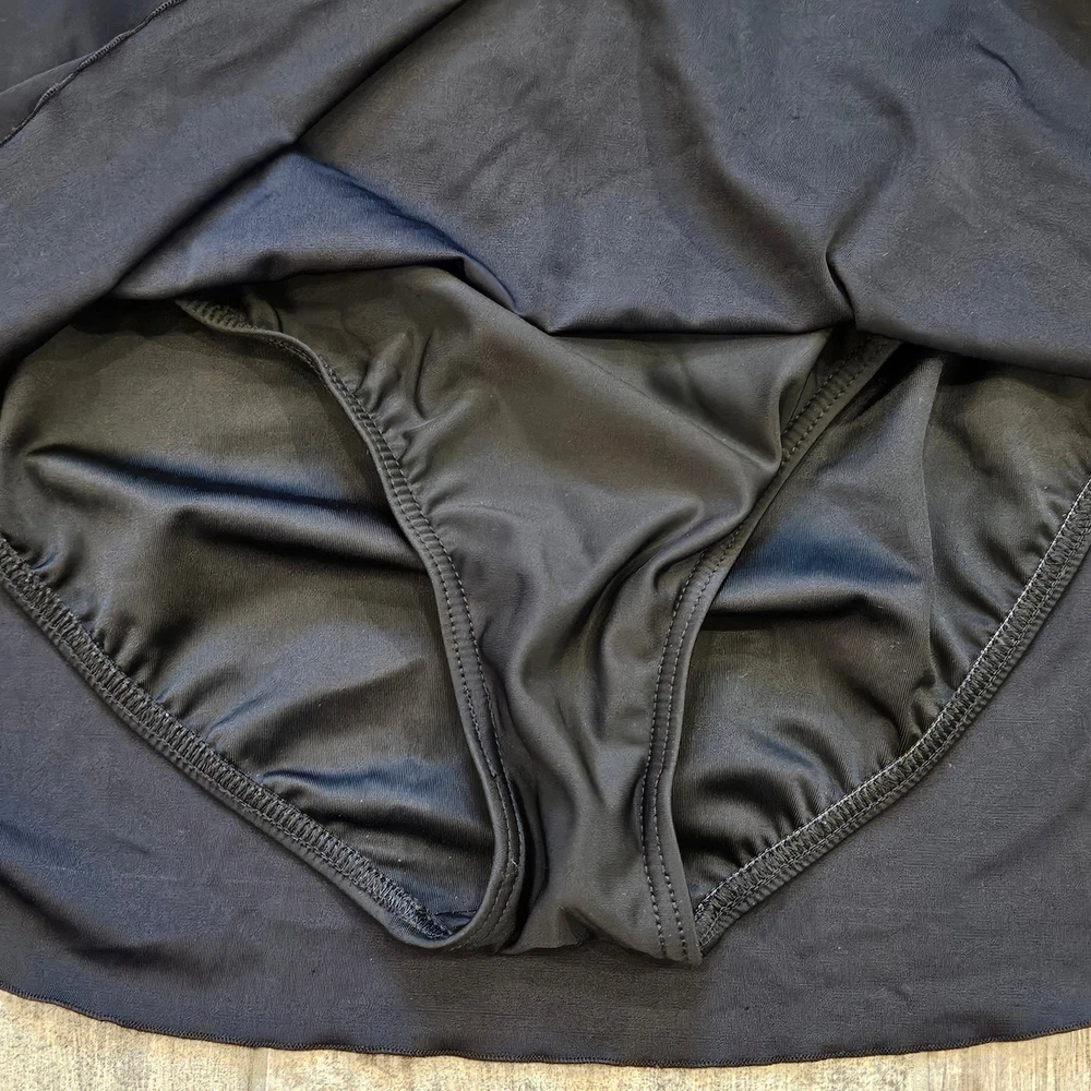 This swim skirt is a game-changer! The silky skirt adds a flirty touch while the full-coverage panty underneath smooths and shapes perfectly. It’s so comfortable and stays put, making me feel confident at the beach. The slimming effect really works—I love how it hugs in all the right places. The pre-owned condition is like new, and the fit is spot-on (sizing up was the right call). Perfect for anyone who wants coverage without sacrificing style!