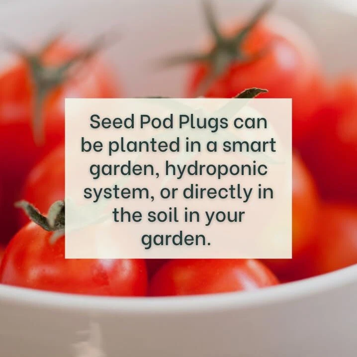 SeedPod complete growing system - includes soil plug, time-release plant food and Micro Tom Tomato seeds. Contains time released plant food in each pod that lasts up to 4 months. Includes pre-planted Micro Tom Tomato seeds in each pod. Growing media is perfectly pH balanced. Perfectly sized (2" x 2" cylinder) for hydroponic gardens like Click & Grow, Lettuce Grow, other indoor gardens, and outdoor gardening. Does not work with Aero Garden which requires a different sized pod.