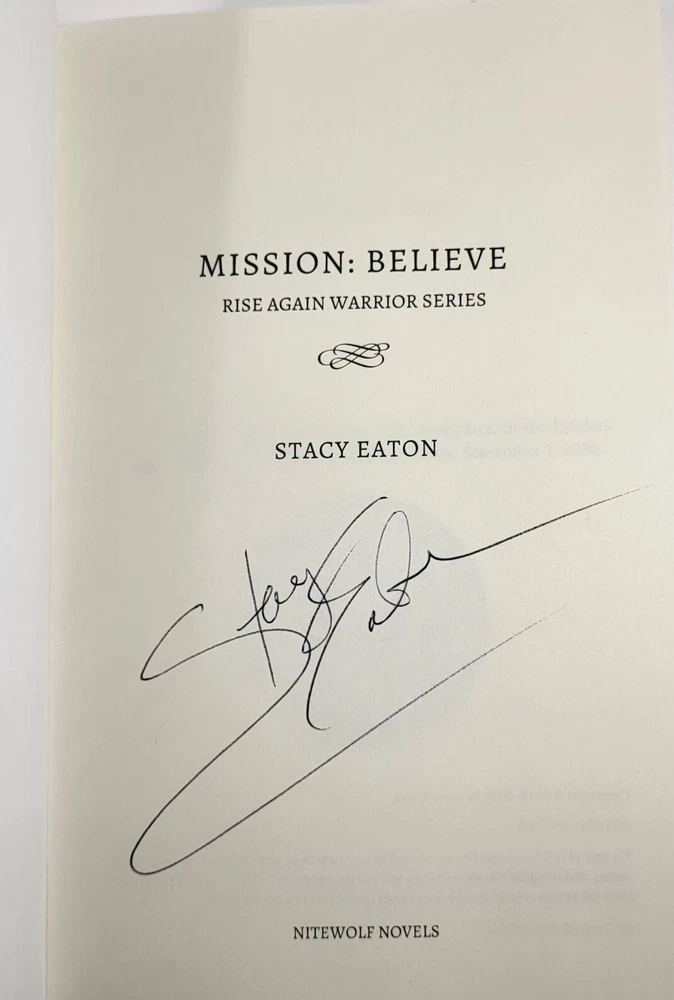 Mission: Believe by Stacy Eaton Signed Pre-Owned Rise Again Warrior #1 2019 [310] Like New Condition Staff Sgt. Shane Logan is lucky to have come from a privileged family, and after losing both of his legs in the war, he now has the best prosthetics that money can buy. While he is trying to move forward with life, he struggles with the past and the way people react to him and his disability. Dive into the world of war and military with Stacy Eaton's "Mission: Believe". This fiction novel is part of the Rise Again Warrior series and has been signed by the author herself. The first edition was published in 2019 by Independently Published and consists of 358 pages. The trade paperback format of the book has a length of 6 inches, a height of 9 inches, and a width of 1 inch. The book is in English and the original language is also English. The intended audience of the book is adults. This pre-owned copy is in like-new condition and weighs 17 ounces. Get your hands on this captivating novel now!