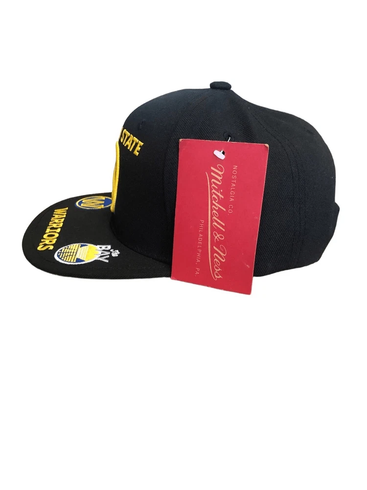 Mitchell & Ness Golden State Warriors Adjustable Snapback hat cap - Black/ Gold - New with tags - Embroidery on front and back