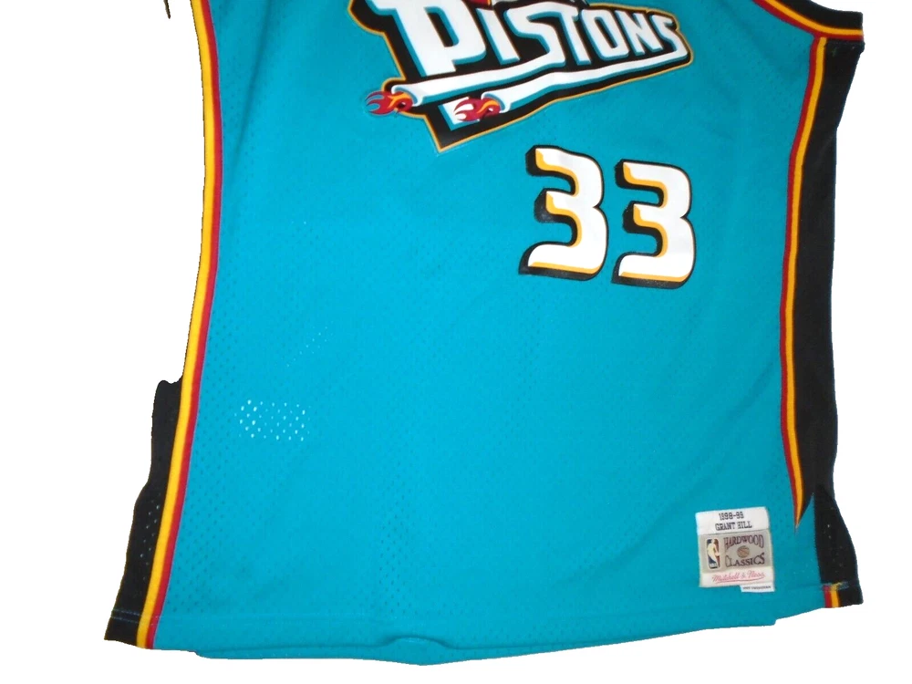 Show off your love for the Detroit Pistons with this Mitchell & Ness Grant Hill 1998-99 jersey. Made for men in a size 2XL, this blue jersey is perfect for any NBA fan. NEW WITHOUT TAGS The jersey features the iconic Pistons logo and the name and number of the legendary player Grant Hill. Crafted with high-quality materials, this jersey is a must-have for any sports memorabilia collector or Detroit Pistons fan. Whether you plan on wearing it to a game or displaying it in your collection, this jersey is the perfect addition. Don't miss out on the chance to own a piece of NBA history. Mitchell & Ness Grant Hill 1998-99 Detroit Pistons Jersey NBA Mens Size 2XL NWOT New without Tags - no defects 6/6