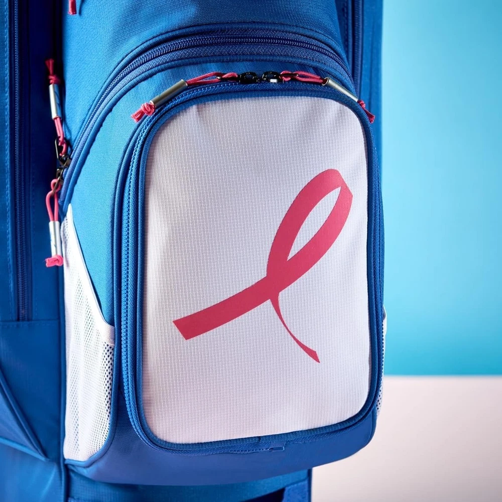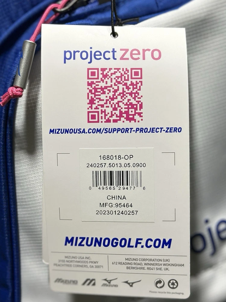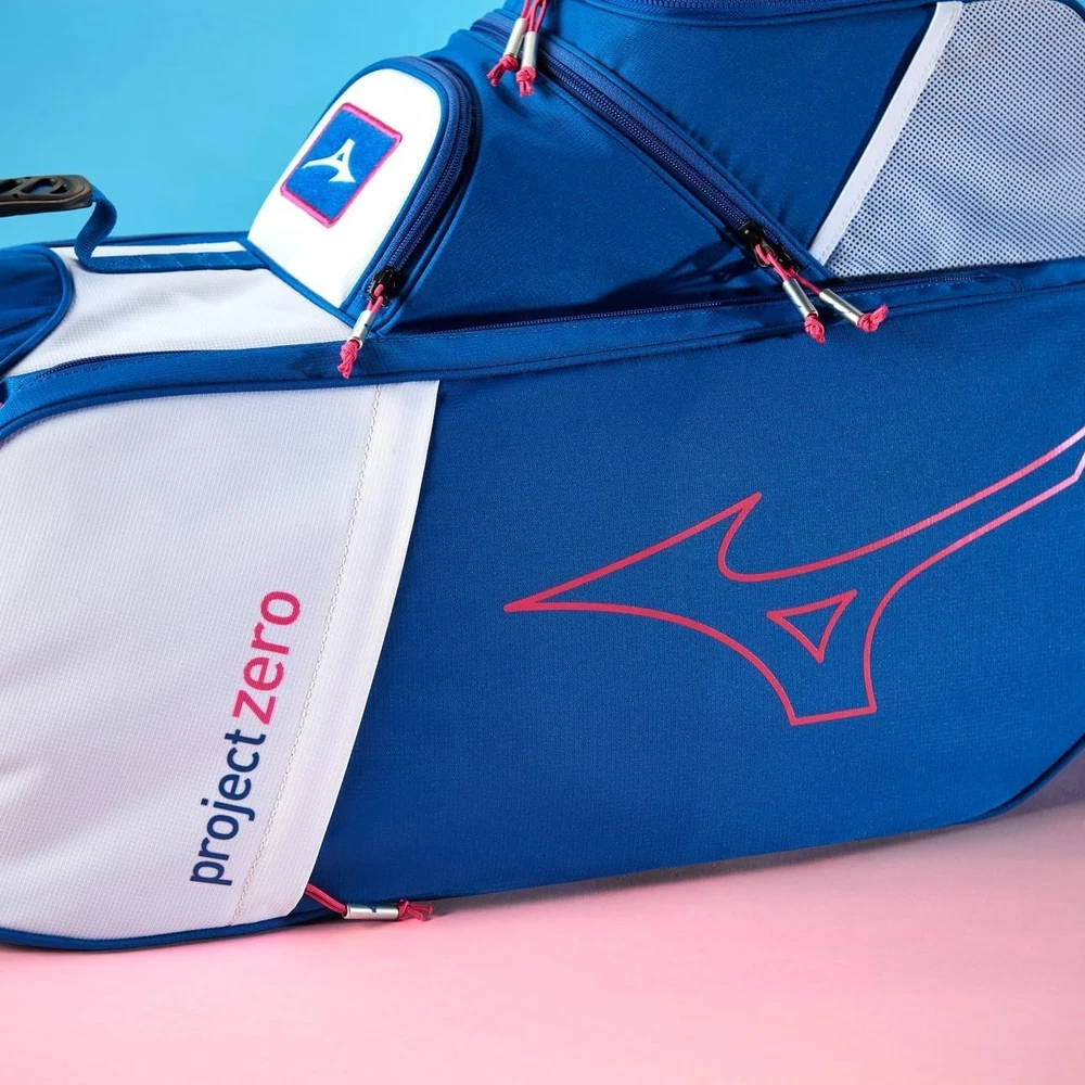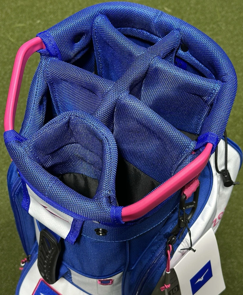 We are a reputable golf company that has been in business in St. Louis, Missouri since 1975. We have been doing this for 40 years because we do things right the first time. WE HAVE THE FASTEST SHIPPING ON EBAY! Don't believe us? Check out our Feedback. If you have questions, please feel free to ask. As always, thank you for looking. Mizuno Project Zero LW-C Cart Golf Bag COLOR: Blue/Pink STYLE: Cart Bag DIVIDERS: 7-Way Divider CONDITION: New w/ Tags - See Pics (10/10) RAIN HOOD: Included We have partnered with BCRF for five years and counting to aid them in their efforts to turn 1 in 8 women diagnosed with breast cancer into 0 in 8. The LW-C is here to break the reputation of cart bags as being bulky, heavy, and cluttered. Large pockets for apparel or bigger items, a cooler pocket for hydration, and a 7-way top cuff are just a few features that this lightweight cart bag still has, but in a smaller, more efficient design. 7-Way Top Cuff with 3 Full Length Dividers Dual Shoulder Straps with Quick Release Clips: Can be easily removed and stored in the full length apparel pocket so straps don't get in the way when riding Single Shoulder Strap with Adjustment Point Full Length Apparel Pockets Large Cooler Pocket with Drain Hole Fleece Lined Valuables Pocket Padded Grab Handle on Body of Bag Removable Ball Pocket Panel: Easily zips off and back on for customization or embroidery Quick Access Mesh Pockets Push Cart Notch Molded into Bottom Cuff: Enables an extra level of stability when used on a push cart Integrated Pen/Market Slot Carabiner Accessory Clip: A metal loop with a spring loaded closure to quickly connect accessories Loop Velcro Patch: Provides easy accessibility for gloves, or offers a perfect place to display morale patches for an extra level of personalization Elastic Strip for Tees Matching Rainhood: Matching rainhood ensures clubs stay dry in wet weather Umbrella Holder