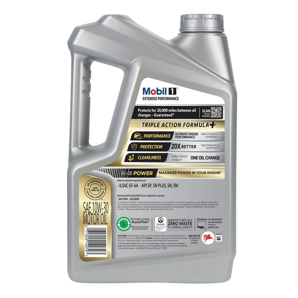 Mobil 1 Extended Performance full synthetic motor oil 10W-30 is designed to help extend engine life for vehicles of all ages and contains a proprietary blend that protects for up to 20,000 miles between oil changes*. Its uniform synthetic oil molecules reduce friction, helping to prevent deposits and sludge buildup. This technologically advanced formulation provides excellent internal engine heat protection (up to 500 degrees Fahrenheit) and low-temperature protection (to -20 degrees Fahrenheit), supporting quick cold-weather starting and ultra-fast protection. Mobil 1 Extended Performance meets ILSAC GF-6 standards to help provide low-speed pre-ignition (LSPI) and timing chain wear protection while keeping your engine clean and helping to improve your fuel economy. Mobil 1 is America’s leading synthetic motor oil brand at retail**, recommended by car builders and experienced mechanics, and is the Official Motor Oil of NASCAR®. (*Protects for up to 20,000 miles or 1 year, whichever comes first. To learn more about the Mobil 1 Limited Warranty, visit Mobil.US. **Source: The NPD Group/ Retail Tracking Service/ Dollar Sales/ PCMO Full Synthetic/ 52 weeks ending Feb 25, 2023) Mobil 1 Extended Performance full-synthetic motor oil 10W-30 helps protect critical engine parts for up to 20,000 miles between oil changes,* controlling oxidation to prevent oil breakdown and maintaining excellent viscosity Utilizes Mobil 1’s Triple Action+ Formula to combine outstanding engine performance, protection, and cleanliness with the added benefit of power Meets ILSAC GF-6 standards to help provide low-speed pre-ignition (LSPI) and timing chain wear protection while keeping your engine clean and helping to improve your fuel economy Helps extend engine life by working to prevent damaging deposits and sludge buildup Provides excellent internal engine heat protection (up to 500 degrees F) and low temperature protection (to -40 degrees F) On Aug 21, 2024 at 21:07:23 PDT, seller added the following information: On Oct 21, 2024 at 05:35:14 PDT, seller added the following information: