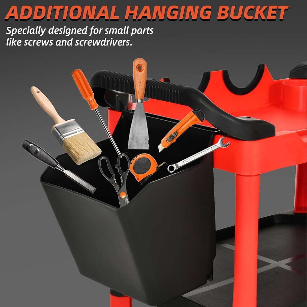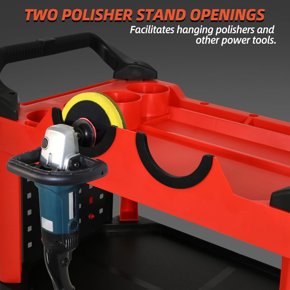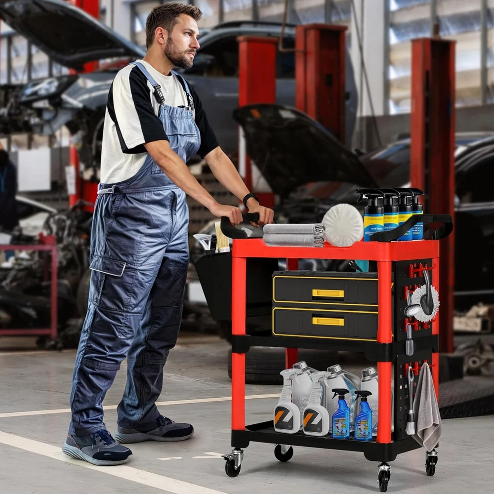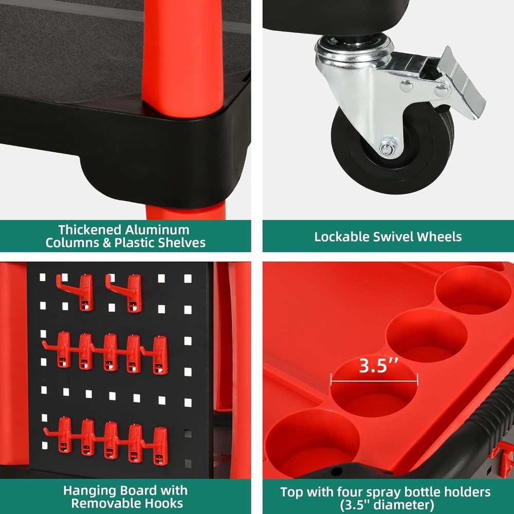 Features: GREAT HELP FOR CAR LOVERS: Our detailing cart has three tiers, helps you sort and place your various tools and quickly pick them up when you need to use them. Can easily hold daily tools. STURDY AND DURABLE: This mobile utility cart features durable polyamide plastic shelves and reinforced all-aluminum brackets for a weight and compression resistance of up to 300 lbs. It is durable and has a large capacity. HUMANIZED DESIGN: Our auto detail cart is equipped with 1 long pegboard with hooks and 1 hanging bucket to easily hang tools; with ergonomic comfort handles on both sides for convenient, easy pushing of the cart; has 4 spray bottle holders; comes with two lockable universal wheels that can be easily opened or closed with just a single step on the wheel locks. In the work can be easily moved and locked, easy to operate. VERSATILE APPLICATIONS: Our car detailing cart find utility in a myriad of settings, be it the garage, workshop, or repair facility, serving as indispensable storage solutions for tasks such as cleaning, repairing, polishing, coating, and painting. Wide range of applications, many functions. EASY INSTALLATION: Easy to install by just one person, no tools required. You can view the installation video and list of accessories to install the cart on the product page. If you have any questions, please feel free to contact us. We will serve you wholeheartedly. Specifications : 1. Material: Plastic 2. Color: Black&Red 3. Product Size: 17" x 26" x 38.2" 4. Item Weight: 21.4 Pounds 5. Number of Tier: Three 6. Weight Capacity: 300 LBS 7. Suitable for: Auto repair shop, Car wash Center, Auto Show, Private car maintenance, ect. Package Included : 1 x Car Detailing Organizer Shipping The shipping rates listed are only for residential or commercial destinations in the continental 48 United States. All international sales will go through eBay Global Shipping Program. Please ask us if there are any questions. We only ship the item to the address that is sent to us at the time of checkout. Please verify the correct shipping address in your PayPal account before making your payment. If we ship your item to an old or invalid address and you are not able to locate the item, we are not responsible for shipping a replacement. Currently, we do not ship to Hawaii, Alaska, Puerto Rico, APO/FPO/PO Boxes. We use USPS, UPS & FedEx as shipping method. Payments cleared before 12 PM PST, will be shipped on the same day. Payment We accept PayPal and all forms of credit card. We will only ship to the confirmed Paypal shipping address given with the payment. We do not offer local pick up service. Return 30 days Money Back Guarantee. If any package that needs to be returned, please contact our customer service first to receive a RMA form. All return items MUST be in brand new condition. About Us Specialized in aftermarket auto parts since 2012, we source and work directly with professional manufacturers to provide the highest quality parts at the most economical prices. We also has over 5 years of shipping experience with FedEx and USPS . Our packing quality is guarantee ,item shipping is timely! On Jul 9, 2023 at 20:53:38 PDT, seller added the following information: On Oct 9, 2023 at 19:46:35 PDT, seller added the following information: On Apr 29, 2025 at 03:19:06 PDT, seller added the following information: