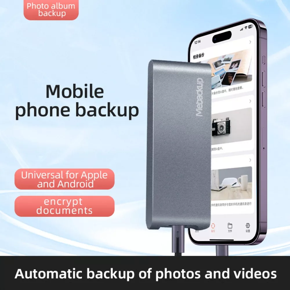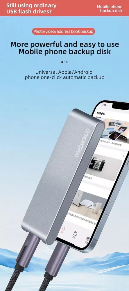Protect your data with top-notch security and enjoy the convenience of portable, high-capacity storage! This encrypted portable hard drive uses advanced encryption technology, ensuring that your personal and work files are always safe. Compatible with multiple devices, it seamlessly connects to Windows and Android systems, providing a high-speed data transfer experience. Its lightweight, portable design makes it ideal for business travel, work, and everyday use. Capacity Options: 64GB / 128GB / 512HB Data Encryption: Protects privacy and prevents unauthorized access High-Speed Transfer: USB 3.0 interface for fast data transfer Wide Compatibility: Works with Windows and Android devices Durable & Portable: Metal casing, shock-resistant, easy to carry Running out of space on your iPhone? This external USB drive is the perfect solution! Specially designed for iPhone users, it connects easily and backs up photos, videos, and files instantly-no internet needed. Supporting multiple file formats, it's simple to use and frees you from storage worries. Plug & Play: Directly compatible with iPhones, no complex setup required Data Backup: One-click backup for easy photo and video management Available Capacities: 64GB / 128GB / 256GB to meet diverse needs Fast Transfer Speed: USB 3.1 interface for efficient data transfer