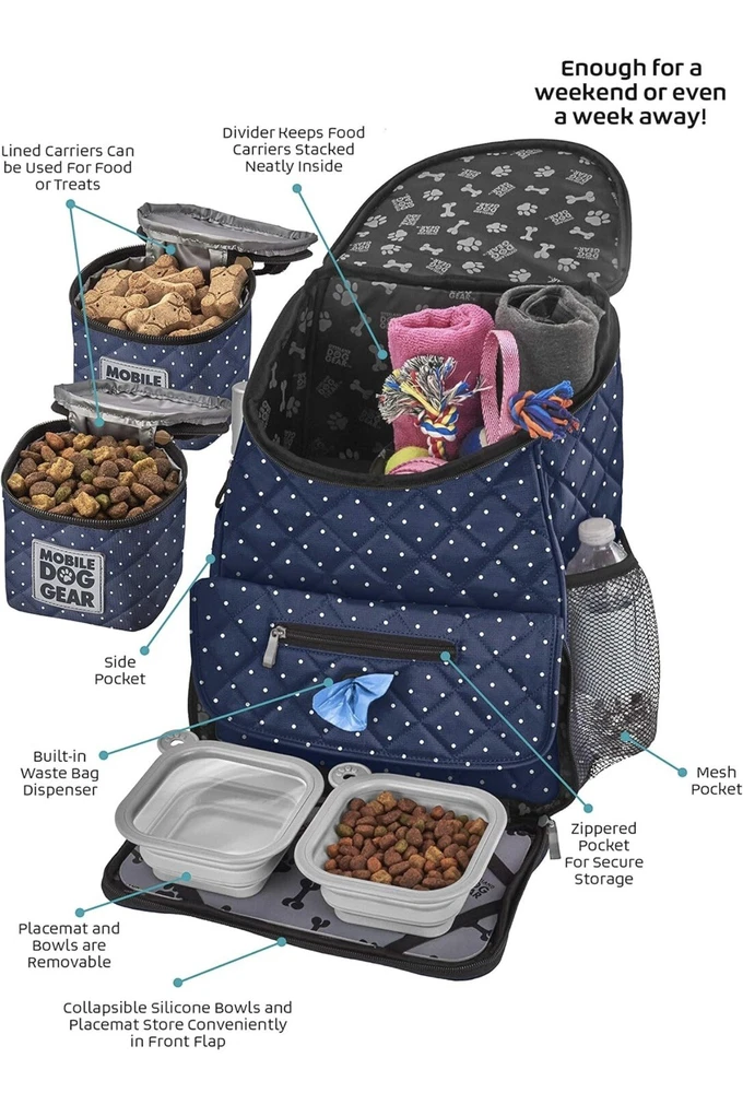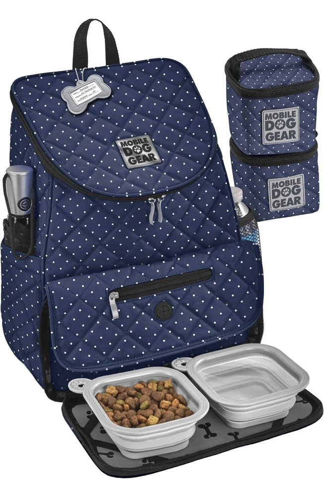 Mobile Dog Gear Backpack Weekender Travel Bag Blue Quilted Multi Compartment