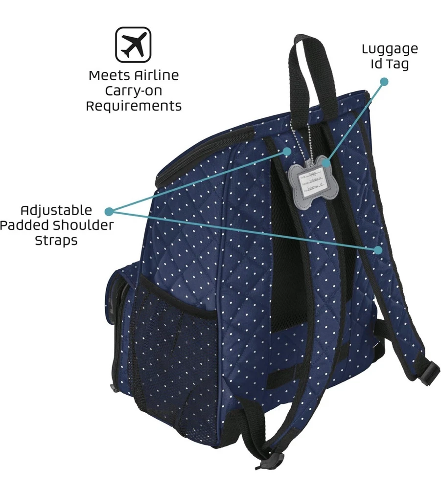 UPC:871407007943Features:Adjustable Straps, Backpack StrapsGender:Unisex AdultSize:18"Pattern:Polka DotCountry/Region of Manufacture:UnknownColor:BlueBrand:Mobile Dog Geargtin13:871407007943Type:Backpacks