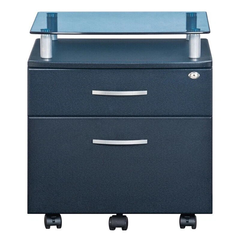 Organize your workspace in style with this Mobile File Cabinet in Navy Blue, featuring a tempered glass top and locking drawers for secure storage. This cabinet is made of high-quality MDF panel with a moisture laminate veneer and scratch-resistant powder-coated steel supports. With 5 chrome non-marking casters, you can easily move it around your office or home.Features: 1 hanging file drawer Top drawer with locking mechanism that locks all drawers Chrome non-marking wheels for easy mobility 1 month limited warranty Ships in 1 boxOther Sections: Materials: Made of tempered glass and MDF panel Dimensions: Measures 16 inches wide x 16.5 inches deep x 24 inches high Weight Capacity: Each drawer holds up to 20 lbs Country of Origin: Made in China Free Shipping Over $49.99* Details Mobile File Cabinet with 2 Drawers&Glass Top,Navy Blue Product Description: Organize your workspace in style with this Mobile File Cabinet in Navy Blue, featuring a tempered glass top and locking drawers for secure storage. This cabinet is made of high-quality MDF panel with a moisture laminate veneer and scratch-resistant powder-coated steel supports. With 5 chrome non-marking casters, you can easily move it around your office or home. Features: 1 hanging file drawer Top drawer with locking mechanism that locks all drawers Chrome non-marking wheels for easy mobility 1 month limited warranty Ships in 1 box Other Sections: MaterialsMade of tempered glass and MDF panel DimensionsMeasures 16 inches wide x 16.5 inches deep x 24 inches high Weight CapacityEach drawer holds up to 20 lbs Country of OriginMade in China