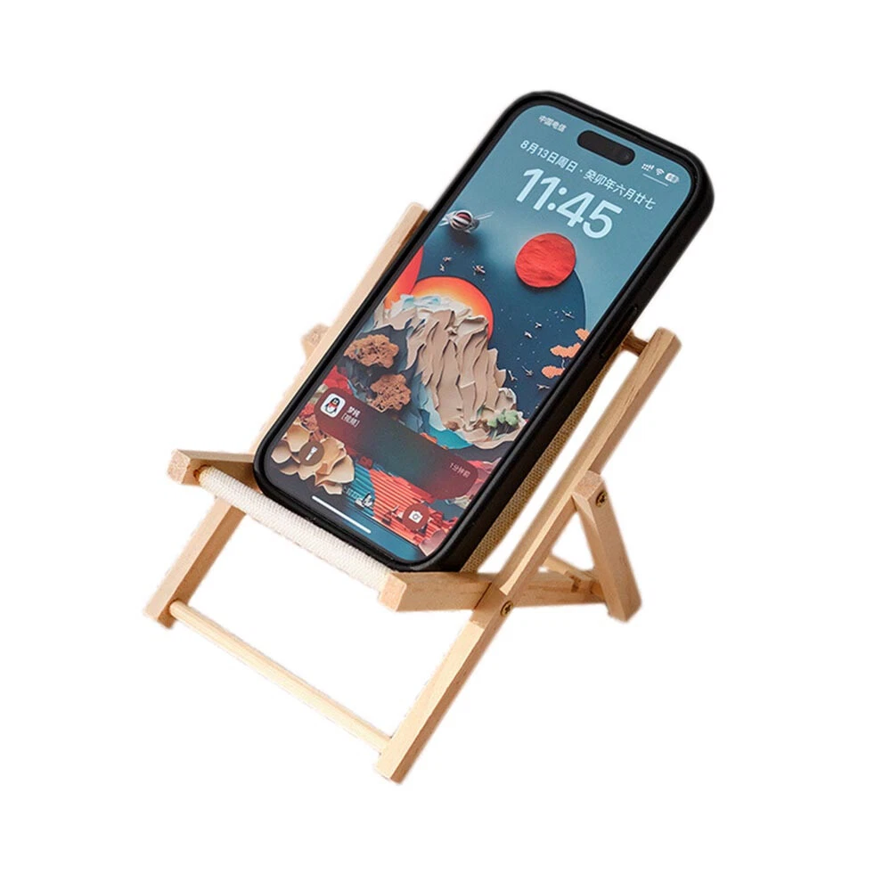 Description: 100% Brand new and high quality 1.The shape of the beach chair is stable, not easily deformed, small and easy to carry. 2.There are two adjustable height slot designs. 3.Multi functional, it is a phone holder and can also be used as a desktop decoration. Suitable for families, offices, dormitories, and travel. Specification: Material: wood+cloth Color: as shown Size: 11.5*12*10.5cm (1 inch = 25.4mm or 1mm = 0.0393 inch) Packing Included: 1pcs mobile phone holder Note: 1.Please allow 2-3% error due to manual measurement. Please make sure you do not mind before you bid. 2.The colors may have different as the difference display,please understand.