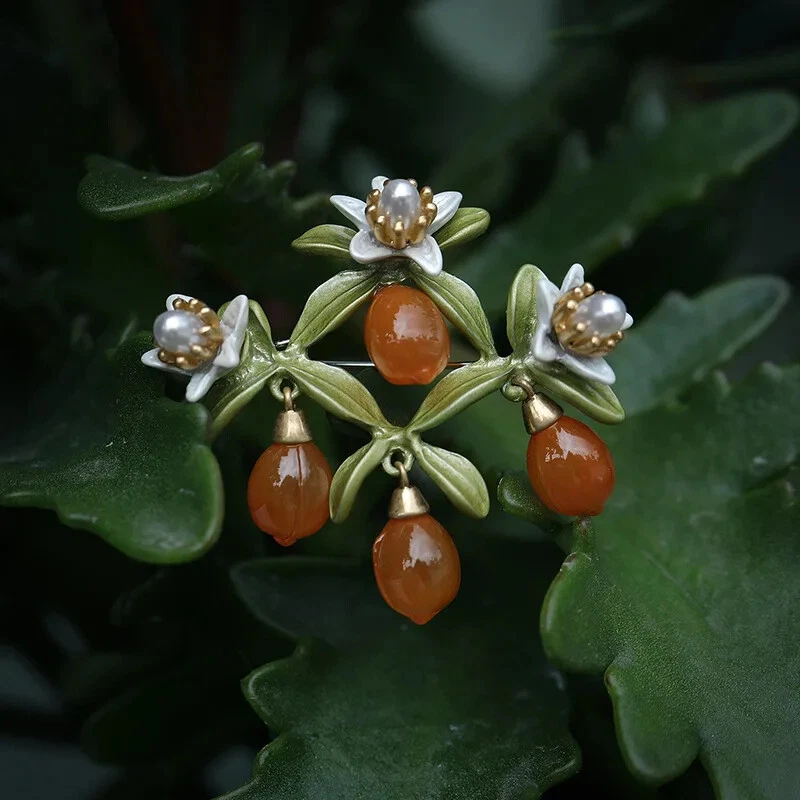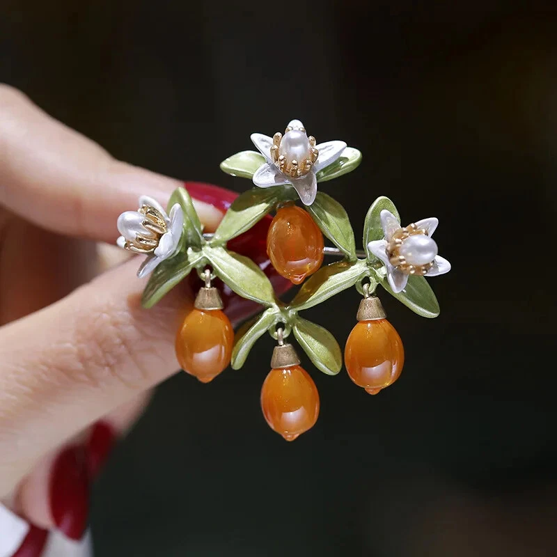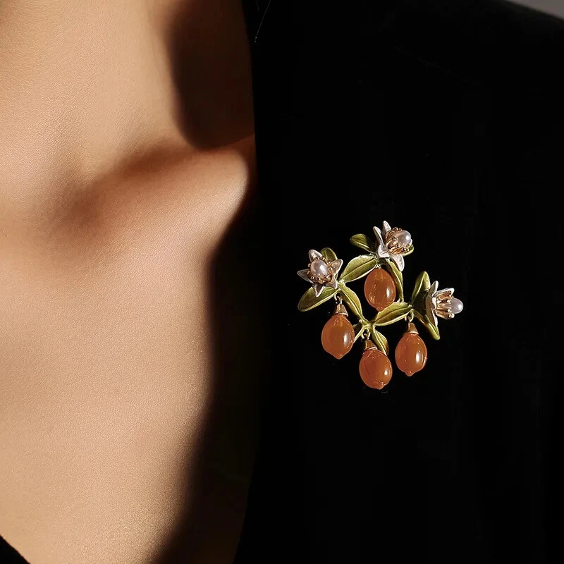 Moda Exquisito Broches Naranja Cristal Creativo Esmaltado Broche Prendedor De Colección