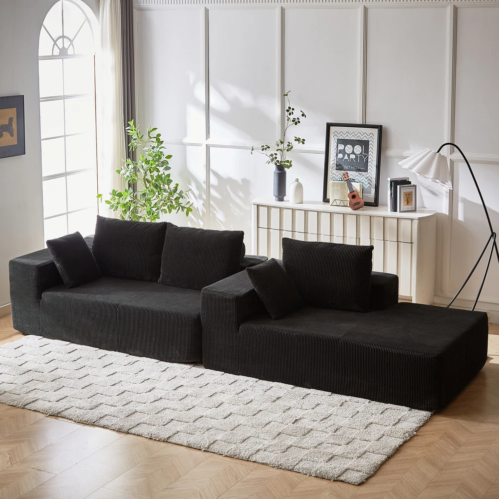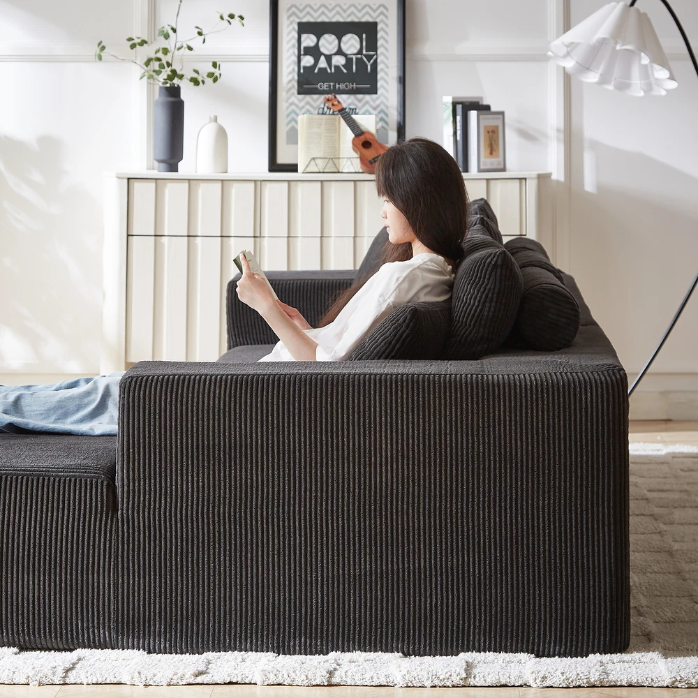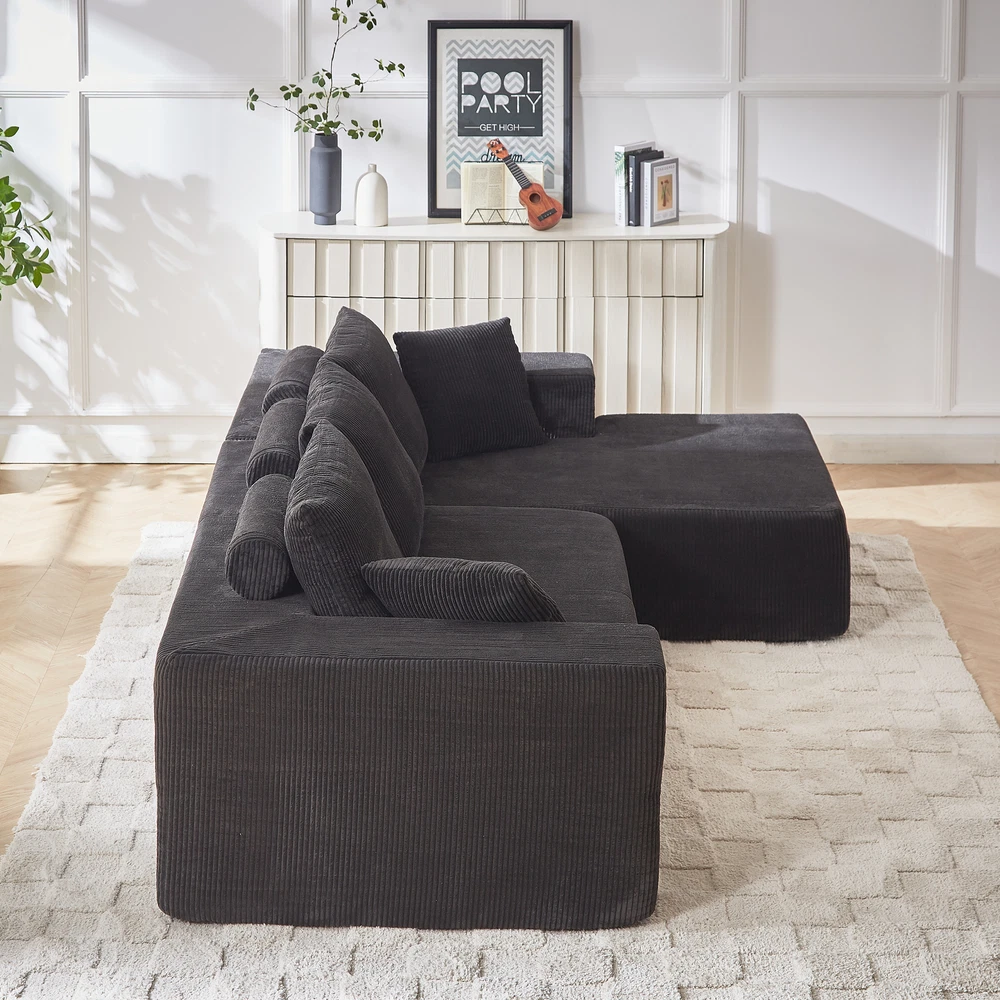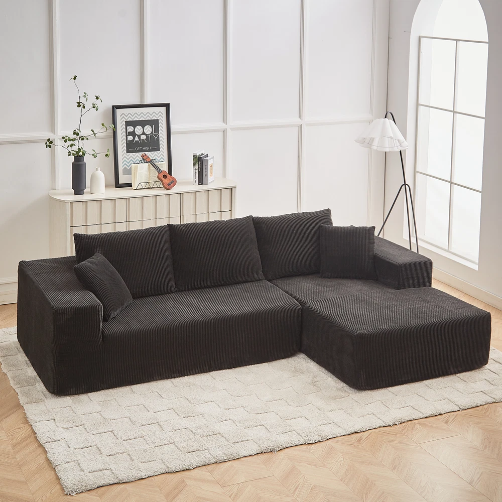 This L-shaped sectional sofa is a fantastic addition to any living space! The modular design lets you rearrange the pieces however you like, making it super versatile. The corduroy upholstery feels soft yet durable, and the straight-cut edges give it a sleek, modern look. Perfect for small spaces since it fits snugly against the wall. Super comfy for lounging or hosting guests—love how customizable and stylish it is!
