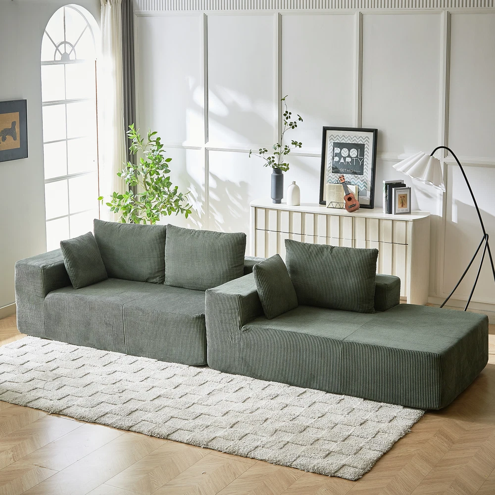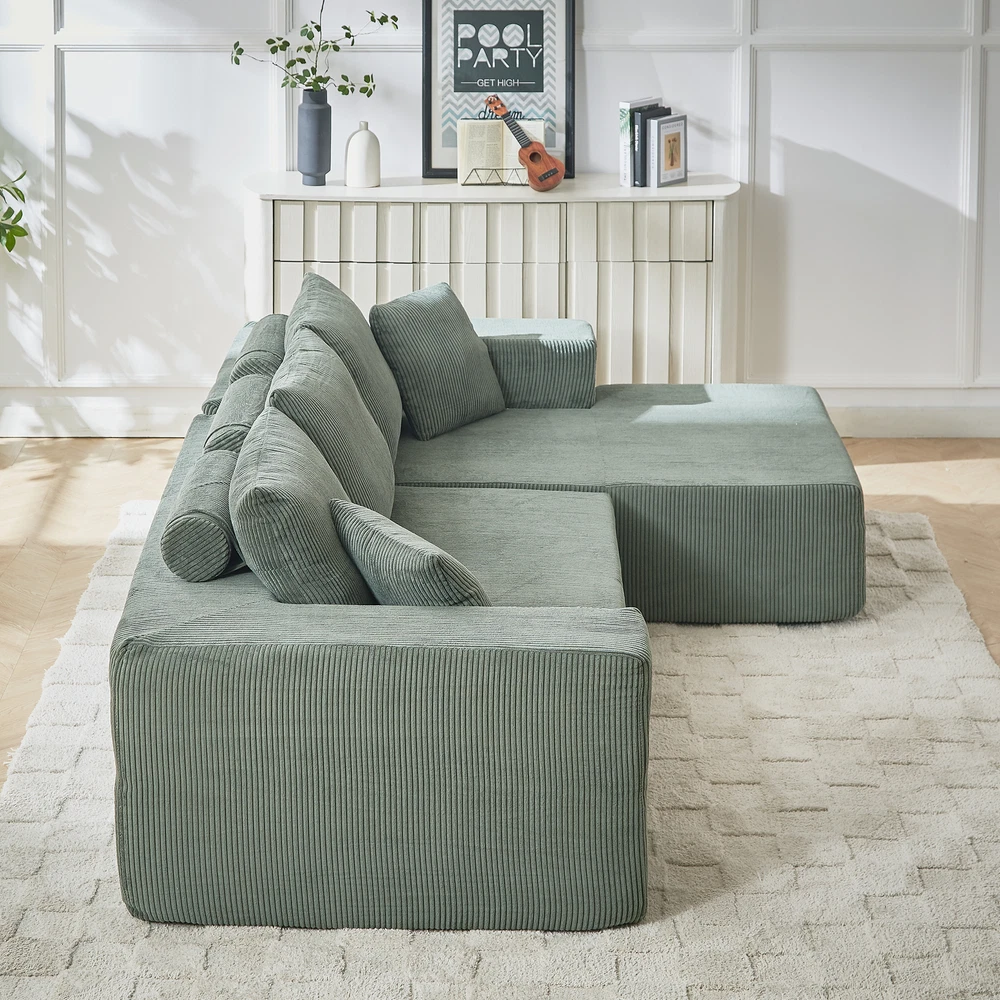 This modern L-shaped sectional sofa is a game-changer for any living space! The corduroy upholstery feels soft yet durable, and the modular design lets you rearrange the pieces to fit your room perfectly. It’s super comfortable, looks elegant, and saves space by tucking neatly against the wall. Love how versatile and stylish it is—perfect for lounging or entertaining!