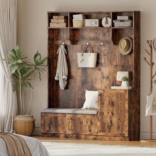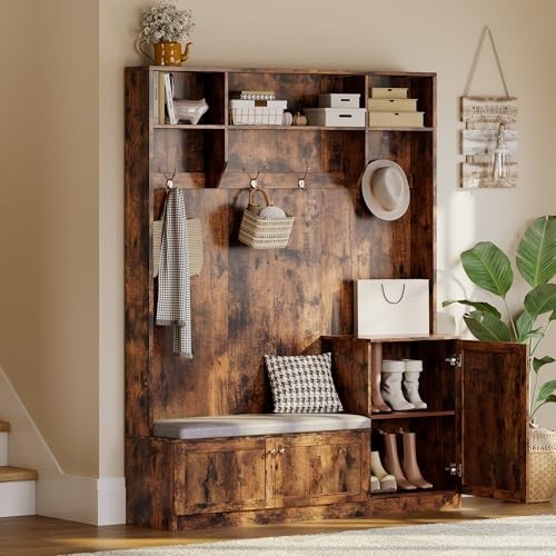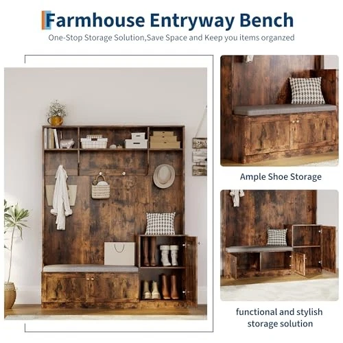 Return Policy Fast Delivery Trusted seller 3-in-1 Modern Entryway Bench with Coat Rack, Hall Tree with 4 Hanging Hooks, 3 Open Compartments & Adjustable Shelf, Coat Rack Freestanding for Entryway, Living Room, Rustic Brown Product Description Ample Storage for an Organized Entryway: Features 2 large cabinets, 3 versatile shelves, and 4 double hooks, this hall tree with bench and shoe storage keeps coats, hats, shoes, and daily essentials organized, perfect for entryway, hallway, or mudroom Space-Saving Design: Enjoy true space efficiency with this 3-in-1 hall tree with bench and shoe storage, perfectly sized at 59.06''x15.75''x78.74'' for narrow entryways. The sleek minimalist design maximizes storage and style in small rooms or apartments Comfortable Seating & Shoe Organization: Enjoy a high-density foam cushioned bench for comfortable shoe changes, while two enclosed cabinets keep footwear organized and out of sight, helping maintain a clutter-free entryway every day Modern Minimalist Design: Contemporary hall tree with sleek lines and classic details complements any entryway or home decor, blending style and function, a timeless choice that elevates your home's first impression Safe & Easy Assembly: Comes with an anti-tipping device for extra safety, clear instructions and all necessary parts make assembly simple, allowing you to set up your entryway shoe holder and coat rack quickly and enjoy a clutter-free, organized space Shipping Returns Payment Shipping Shipping is FREE to all addresses other than APO/PO boxes in the lower 48 states. All our stock ships from US-based warehouses. Shipped via USPS or UPS (depending on location and package weight) Unless stated otherwise, all orders will ship within 24-72 hours of your payment being processed. Check our feedback to see the great reviews of FAST shipping we offer. Returns Seller does not accept returns Payment We currently accept payment via eBay managed payments only. Once payment is cleared, we will dispatch your shipment within 1-3 business days. Please refer to the "Shipping" tab for more information regarding shipping speed to your destination.