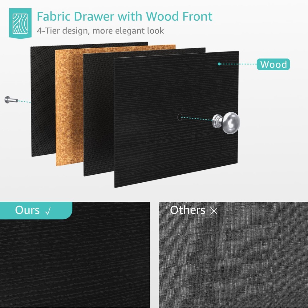 $ 43.44Modern Tall Nightstand with 4 Fabric Drawers & Built-in Charging Station