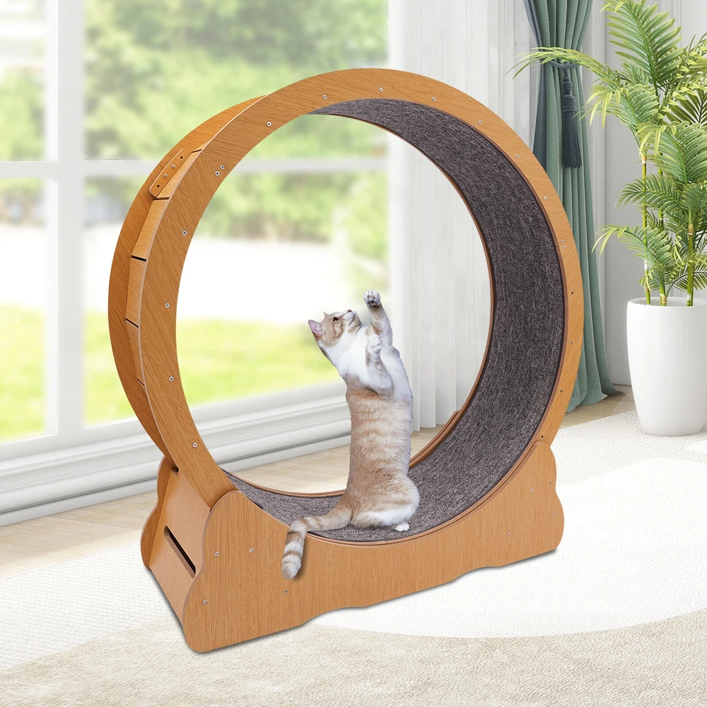 Package Included 1* Cat Exercise Wheel 1* Mat 1* Screwdriver 2* Gloves 1* English Manual Other Accessories Required for Assembly Modern Cat Wheel Round Cat Exercise Wheel for Indoor Cats With Floor Mount ❤Welcome❤ Description In this busy world, every cat deserves an exclusive exercise playground! This specially designed treadmill for cats is the guardian of your pet's vitality and health. With its noise-cancelling design, it won't disturb your family's quiet time even when running late at night. Its classic design blends easily into a variety of home environments and is both beautiful and practical. Choose it to give your furry child a chance to unleash his or her nature and peace of mind for yourself. Key Features Sturdy and Quality: The product consists of HDF boards and sisal mat, using varnish technology, with high strength, wear resistance , and long service life. Excellent Load-bearing Capacity: The high-quality solid wood, widened low center of gravity base, and strong fixing endow the product with a bearing capacity of 110.23 lbs around, enough for safe running for large or energetic cats. Cat Friendly: Adopting a full wrap-around design, the gap between the base and the rollers is less than 6㎜ to prevent the cat's claws from getting caught in. The cushion provides a good grip for the cat's paw. Low Noise: Adopting 8 TPE silent rollers with steel ball bearings and noise reduction holes on both sides, it greatly reduces the noise and enables cats to run freely without affecting the rest and sleep of the family, making it ideal for apartment living. Thoughtful Design: Roller track design allows cats to run easily at any time. Its large inner diameter of 3.28 ft and 12-inch wide runway allows cats to run as much as they want without hurting their spine. Beautiful Appearance: Featuring a green look, hidden patchwork design, and small fish-shaped accent, this product complements cats together and will blend in with most homes, adding texture and beauty to your room. Good Helper: Regular running can help indoor cats increase their exercise, maintain a healthy weight, and prevent obesity and related diseases such as heart disease and diabetes. It can also stimulate your cat's curiosity and hunting instincts, reducing boredom and destructive behaviors such as scratching furniture. Space-saving: It fully utilizes vertical space and covers a floor area of only 39.37*13.58 inches , which is ideal for a family with pets in a flat. Nice Gift: It is a stunning gift for cats, and a great gift for friends, family, or colleagues who have cats at home to enjoy a more convenient life of pet ownership. Details Fish-shaped Clasp: You can use it to lock the product when not in use so that you can freely control the time of running for cats to prevent them from having accidents due to being left unattended. Pre-drilled Holes: They are easy to install and save you installation time. Hook and Loop Fastener : It allows for easy mat installation and removal and is reusable. Application This product is suitable for 16.53-22.05 lbs of full-stage cats, small dogs and other running and exercise needs in flats, living rooms, pet shops, cat cafes, and more. It supports cat running, spinning, climbing & napping. Specifications Style: Modern Shape: Round Color: Original Wood Color Material: HDF, Sisal Surface Treatment: Varnishing Mount Type: Floor Mount Control Type: Manual Assembly Required: Yes Indoor/Outdoor Usage: Indoor Applicable Object: Cats Applicable Weight: 7.5-10kg/ 16.53-22.05 lbs Max. Load Capacity: About 50kg/ 110.23 lbs Outer Diameter: 1.1m/ 3.61 ft Inner Diameter: 1m/ 3.28 ft Runway Width: 30.5cm/ 12 in Gross Weight: 21kg/ 46.29 lbs Net Weight: 17kg/ 37.48 lbs Product Size: 100*34.5*116cm/ 39.37*13.58*45.67 in Package Size: 108*38*20cm/ 42.52*14.96*7.87 in Package Included 1* Cat Exercise Wheel 1* Mat 1* Screwdriver 2* Gloves 1* English Manual Other Accessories Required for Assembly Notes Please make sure our product size is suitable for your pet before buying. Please check the dimensions carefully before purchasing and make sure you have enough space for it. Please note that the installation process may take a little time and it is recommended that you work in pairs and follow the instructions. Cats have a high level of vigilance toward new things. You can use their favorite toys or treats to lure them a little, and they will quickly become familiar with and like this product. Please note that the mat can be cleaned on the surface with a brush, not in water or machine wash. Please trim your cat's nails before using the cat running wheel. Please do not expose the product to the sun or soak it in water for a long time. Please allow the slight color difference caused by the shooting light and 1-3cm error due to manual measurement, and make sure you do not mind before you order. Welcome to autocomponents999 to purchase products, please feel free to contact us for any questions.👍 Payment Delivery details Terms of sales About us Contact us Payment We accept ebay payment 。 Fees such as import duties, taxes are not included in the item price or shipping costs. These charges are the buyer's responsibility. Delivery details Shipping: 2-9 working days to: USA Terms of sales We maintain high standards of excellence and strive for hundred percent customer satisfaction. Feedback is very important to us. We hope that you contact us immediately before you give neutral or negative feedback, so that we can address your concerns. It is impossible to address issues if we do not know about them! About us Your satis faction is our ultimate goal. We work hard to earn your trust and future business. Our certified technicians have tested each item before shipping. The unit comes with 1 year limited warranty on all manufacturing defects. a) If you receive a defective item, you may return it or ask for a discount. Please contact us within 14 days after you receive the package. b) What you returned must be intac