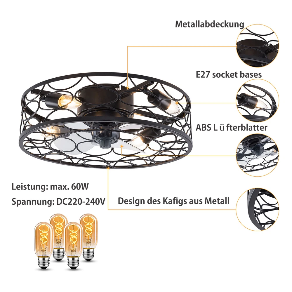 ✦ Dimensions Mounting height: 7,87" (20 cm) Mounting width: 18,5" (48cm) ✦ Information about the light bulb Bulb requirements: Use (4) E27Bulbs, maximum 60watt, options include incandescent lamps, fluorescent lamps, LED, halogen, etc. (Bulbs are not included) Power: max. 60W Voltage: DC110-220V Remote control: yes ✦ Material and color Material: coated black metal, Ceiling Fan Chandelier Ceiling Lighting Fixtures 6 Wind Speeds w/Remote control Welcome to my store: 【 Unique and safe new design 】 6-stage adjustable fan ceiling light: The fan lamp has six wind speeds to choose from, which you can adjust to your needs. Circulates the air and keeps you cool on hot summer days for a pleasant living and sleeping climate. Timing function and forward and reverse rotation function: The industrial fan light can be timed by remote control, timing 1/2/4 hours, you can customize it according to your needs. The fan light also has the function of forward and reverse rotation. In summer, the ceiling fans run in the positive direction to move the air. In winter, the ceiling fan can turn in the opposite direction. Available all year round. Quiet running industrial ceiling fan with light: use full copper motor, more stable operation, low noise, long service life, smoother and more comfortable wind, and create a pleasant environment during use. Retro ceiling fan with lights: The outside is designed with a metal mesh cage, the fan blades are perfectly hidden in the lampshade, so you are safer during use. The easy-to-install fan ceiling light is perfect for use in bedrooms, living rooms, dining rooms, kitchens and more. This ceiling fan with is designed for all who need a wonderful update for your home. Suit for ceiling of 7.5-11.5 feet, and room of room size 86ft*162ft children's room, bedroom, kitchen island or dining room. Easy to install: hard wire. Perfect design to illuminate your space, whether it is a kitchen island, dining room, bedroom, foyer or any other place. Fans and lights can be controlled separately, which can control your ceiling fan quickly and easily! (max. distance of 20 meters). The closed ceiling fan speed varies from soft to cool, adapts to daily needs; ABS fan blades, durable, light and easy to clean. Timing function – Smart timing set to automatically turn off light and fan after falling asleep. Silent motor ceiling fan for indoor and outdoor use is equipped with whisper wind motor that makes no noise while providing a quiet and comfortable environment ✦ Dimensions Mounting height: 7,87" (20 cm) Mounting width: 18,5" (48cm) ✦ Information about the light bulb Bulb requirements: Use (4) E27Bulbs, maximum 60watt, options include incandescent lamps, fluorescent lamps, LED, halogen, etc. (Bulbs are not included) Power: max. 60W Voltage: DC110-220V Remote control: yes ✦ Material and color Material: coated black metal, Easy installation: surface mounting. Products include English manuals, remote control and installation instructions with the included bracket, which provides easier installation and detailed installation instructions. Applicable Scenarios: The chandelier is suitable for home and business premises, such as living room, dining room, kitchen island, bedroom, foyer, farmhouse bar, restaurant, gallery, showroom, hotel, cafe, office. Package included 1 *Fan light (bulbs not included) 1.Accessory package 1.User manual ✦ Proposal: 1.For safe installation, please ensure that the electrical box to which this device is mounted is properly attached to a structural element of the building. 2. All wires are connected. When unpacking, be careful not to pull with cables, as a bad connection may occur. 3.Do not connect power until your device is fully assembled. DESCRIPTION 2: Welcome to autocomponents999 Thank you for your support! If you have any questions,please feel free to contact us!!! Welcome to autocomponents999 Our store has a wide range of product categories for you to choose from. Welcome to click on our store to make a purchase or consult us, and we will recommend the products you need. Payment Delivery details Terms of sales About us Contact us Payment We accept ebay payment 。 Fees such as import duties, taxes are not included in the item price or shipping costs. These charges are the buyer's responsibility. Delivery details Shipping: 2-9 working days to: USA Terms of sales We maintain high standards of excellence and strive for hundred percent customer satisfaction. Feedback is very important to us. We hope that you contact us immediately before you give neutral or negative feedback, so that we can address your concerns. It is impossible to address issues if we do not know about them! About us Your satis faction is our ultimate goal. We work hard to earn your trust and future business. Our certified technicians have tested each item before shipping. The unit comes with 1 year limited warranty on all manufacturing defects. a) If you receive a defective item, you may return it or ask for a discount. Please contact us within 14 days after you receive the package. b) What you returned must be intact and in its original packaging as re? u. Customer is responsible for shipping costs of the returned item. c) We will cover the cost of shipping back t with the shipping rate indicated in the registration page. We will send you a new unit or refund the full payment you paid. Thank you. Contact us Business Hour Business Hour: Monday To Friday: 8:30 AM to 5:00 PM (Beijing China time) Due to time zones, our reply to your questions may not be immediately. But within above working time, we will reply your email within 24 hours. If it's non-workdays, please kindly be patient and wait till Monday. Please contact us with ebay message. Please feel free to contact us if you have any questions. Monday To Friday: 8:30 AM to 5:00 PM (Beijing China time) Due to time zones, our reply to your questions may not be immediately. But within above working time, we will reply your email with