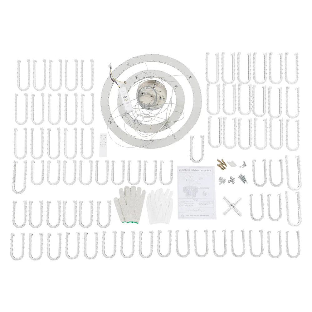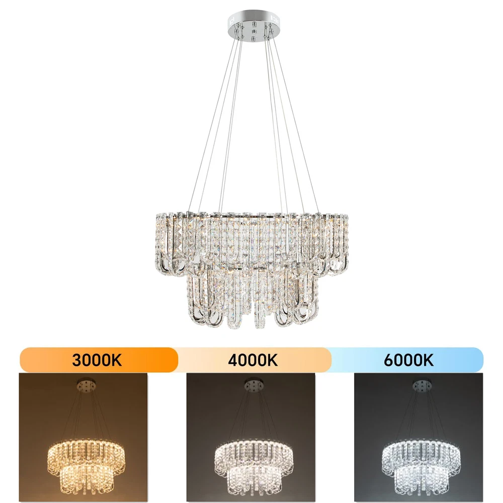 Welcome to hopefuther!!! Description Brighten up the night with a crystal chandelier. The delicate silver frame, intertwined with the bright light of the crystals, is like a beautiful painting that is mesmerizing. Its use of high-quality crystals can reflect light to almost every corner, brightening the whole room. Even in a dark environment, it can bring you endless warmth and romance. Whether at home or in public, it can bring you a wonderful visual and lighting experience. Key Features Selected Material: The product is made of high-quality crystal, stainless steel, and steel wire with the cutting process, making it bright, sturdy, anti-rust, and still beautiful and practical after long-term use. Unique Appearance: The unique crystal lampshade, the elegant silver color, and the rich hierarchical structure give the product a unique modern style. Its charming and romantic style can be matched with most of the furniture, which is a great choice for creating a home atmosphere. Excellent Light Source: The environment-friendly and energy-saving LED light with a high color index can effectively avoid glare and stroboscopic, protect your eyes, restore the most authentic color of objects, light up an area of about 107.64-215.28 ft², and save your costs. Different Light Colors: You can adjust the light colors(warm, white, and neutral) through the remote control(within 9.84-16.4ft) or wall switch(not included) to create different indoor atmospheres and meet the lighting needs for different activities. Adjustable Height: You can adjust the height of the chandelier by adjusting the length of the hanging wire(11.81-59.06 in) for different ceiling heights. Wide Voltage: This product supports a wide voltage range (90-265V) and can adapt to different voltage environments. Simple Installation: The simple structure, complete accessories, and clear installation diagram can help you complete the installation quickly and accurately. Exquisite Gift: With a beautiful appearance and practical function, it is an ideal gift for your friends and relatives on birthdays, anniversaries, festivals, housewarming, and other days. Good Customer Service: We stand behind all our guests and look forward to assisting you with your purchase. It is our pleasure to answer your confusion and questions. The end of the story between us is not "we sell and you buy". Details Solid Base: The 7.87-inch round base increases stress area, and can make the item fixed firm without falling easily. Practical Gloves: They protect your hands and the surface of the fixture during installation. Smooth Edge: The rounded and smooth edges not only add to the aesthetics of the product but also improve the safety of use. Application With a lighting area of 107.64-215.28 ft², it is ideal for kitchens, hallways, living rooms, bedrooms, balconies, bars, aisles, foyers, hotels, restaurants, corridors, cafes, dining rooms, children's rooms, libraries, billiard parlors, and other indoors. Specification Color: Silver Style: Modern Shape: Round Material: Crystal, Stainless Steel, Steel Process: Cutting Assembly Required: Yes Mounting Type: Ceiling Mount Indoor/Outdoor Usage: Indoor Efficiency: E Control Method: Remote Control, Wall Switch(Not Included) Light Color: White, Warm, Neutral Color Temperature: 3000-6500K Light Source: LED Voltage: 90-265V Power: 60W Battery Type: 2*AAA Batteries(Not Included) Remote Control Distance: 3-5m/ 9.84-16.4ft Illuminated Area: 10-20 m²/ 107.64-215.28 ft² Adjustable Height Range: 30-150cm/ 11.81-59.06 in Base Diameter: 20 cm/ 7.87 in Lampshade Diameter: 60 cm/ 23.62 in, 40 cm/ 15.74 in Lampshade Height: 40 cm/ 15.74 in Hanging Wire Length: 1.5m/ 4.92 ft Package Included 1* Crystal Chandelier 1* Remote Control 1* English Installation Diagram 2 Pairs* Gloves All Accessories for Installation Notes 1. The wall switch and remote control batteries are not included in this package. You need to prepare 2 AAA batteries yourself. 2. Please read the installation instructions completely before use. And pay particular attention to the safety instructions included. 3. Please use the lamp within the applicable voltage range and clean it regularly. Please cut off the power supply when you clean the light. Please wipe with a soft cotton cloth and do not use household cleaning agents. 4. Please check the dimensions of the product before ordering to ensure it fits your home. 5. Please make sure the power is cut off before installation. To ensure your safety, we recommend that two people install this lamp together. Please install it by someone with an electrical license if necessary. 6. Please use it in a dry environment. It is not suitable for outdoors and bathrooms. 7. Please allow the slight color difference caused by the shooting light and the 1-3 cm error due to manual measurement, and make sure you do not mind before ordering. Payment Delivery details Terms of sales About us Contact us Payment We accept ebay payment 。 Fees such as import duties, taxes are not included in the item price or shipping costs. These charges are the buyer's responsibility. Delivery details Shipping: 2-9 working days to: USA Terms of sales We maintain high standards of excellence and strive for hundred percent customer satisfaction. Feedback is very important to us. We hope that you contact us immediately before you give neutral or negative feedback, so that we can address your concerns. It is impossible to address issues if we do not know about them! About us Your satis faction is our ultimate goal. We work hard to earn your trust and future business. Our certified technicians have tested each item before shipping. The unit comes with 1 year limited warranty on all manufacturing defects. a) If you receive a defective item, you may return it or ask for a discount. Please contact us within 14 days after you receive the package. b) What you returned must be intact and in its original packaging as re? u. Customer is responsible for shipping costs of the ret