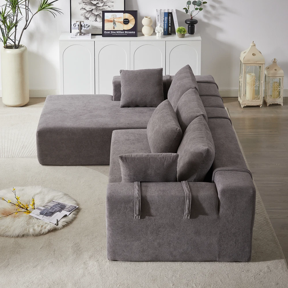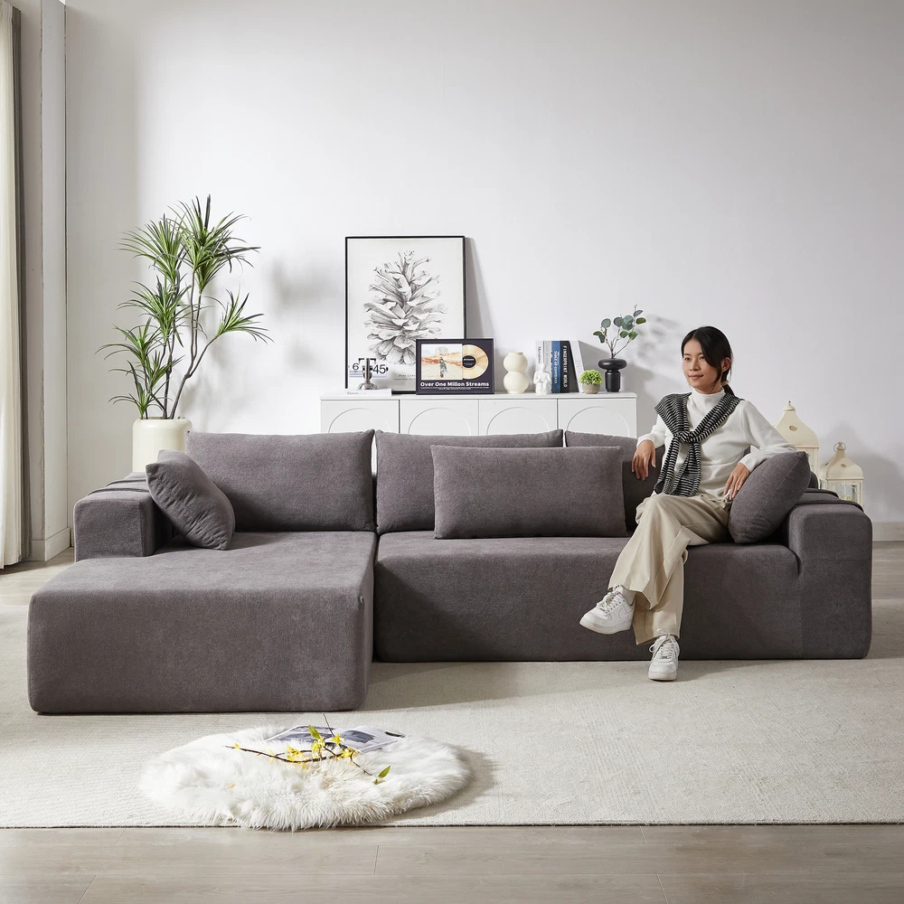 Love this modern sectional! The chenille fabric is super soft yet durable, and the clean lines give my living room a sleek, timeless look. The six included pillows add just the right touch of comfort and style. Its modular L-shape fits perfectly in my space, making it both functional and stylish. Assembly was a breeze, and the quality feels premium—definitely worth it for the price! My guests always compliment how cozy and inviting it is. Highly recommend for anyone wanting to upgrade their living room!