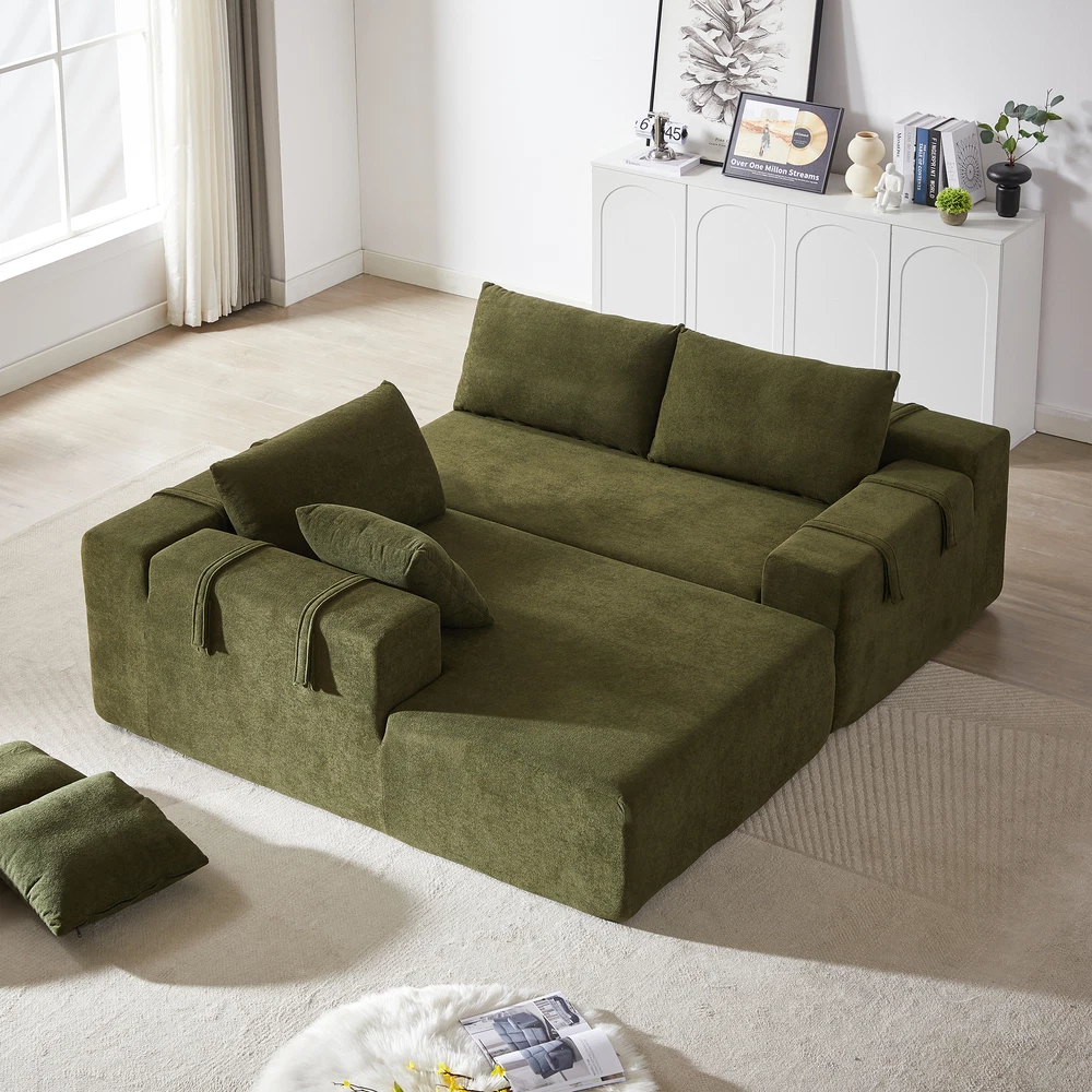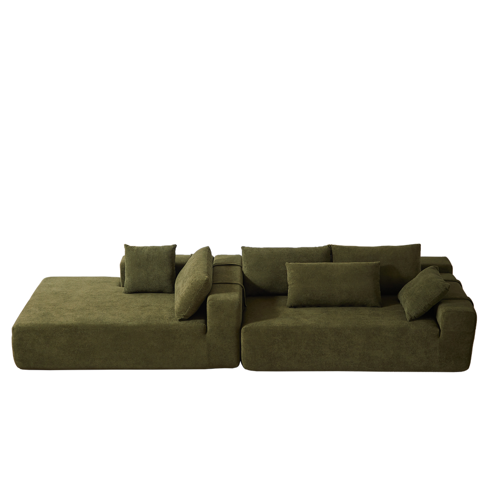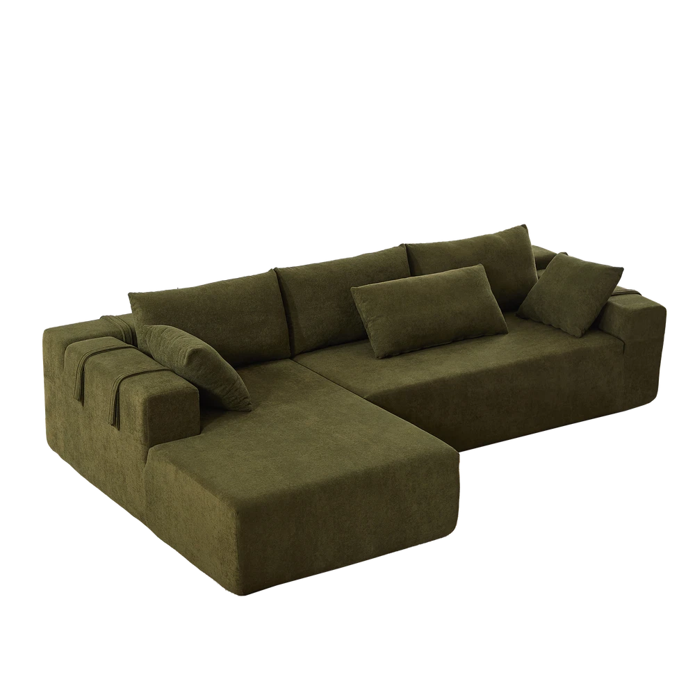 Love how this L-shaped sectional transforms my living room! The chenille fabric is super soft yet durable, and the modular design fits perfectly in my smaller space. The included plush pillows add extra comfort, and the clean modern lines give it a stylish, timeless look. Easy to assemble and surprisingly comfy—it’s become my favorite spot to relax. Highly recommend for a cozy, well-designed upgrade!