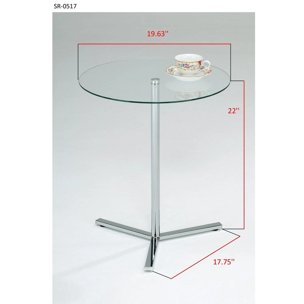 Update the decor of any room in your home or your office with this contemporary end table.The glass and polished chrome materials and tripod style legs create a stylish, modern look that is sure to fit in with any decor. Features: Beautiful chrome finish with a glass top Contemporary clean, linear lines Versatile and durable that lasts for many yearsK&B furniture is a major USA importer and distributor of home furnishing product we source from around the world. We travel year round to find products that are of high Quality and are affordable. We only work with the best factories that maintain the highest standards for production and adhere to rigid quality control standards. You can be assured our quality controls are maintained no matter what type of home furnishing products we Free Shipping Over $49.99* Details Modern Chrome Metal and Clear Tempered Glass Accent Side End Table Product Description: Update the decor of any room in your home or your office with this contemporary end table.The glass and polished chrome materials and tripod style legs create a stylish, modern look that is sure to fit in with any decor. Features: Beautiful chrome finish with a glass top Contemporary clean, linear lines Versatile and durable that lasts for many years K&B furniture is a major USA importer and distributor of home furnishing product we source from around the world. We travel year round to find products that are of high Quality and are affordable. We only work with the best factories that maintain the highest standards for production and adhere to rigid quality control standards. You can be assured our quality controls are maintained no matter what type of home furnishing products we import.