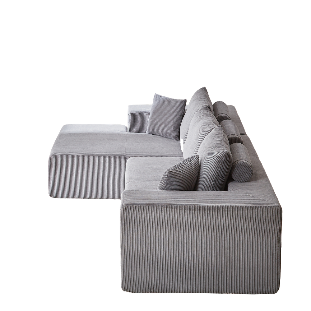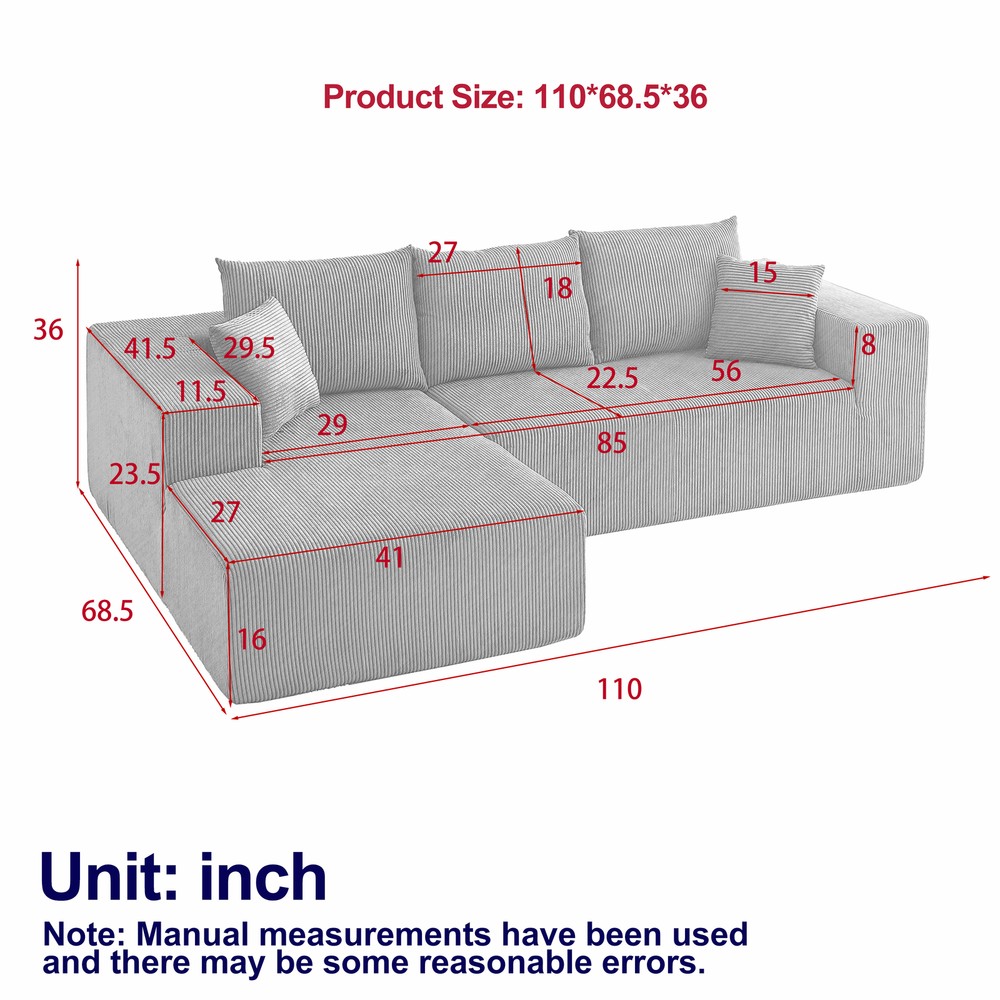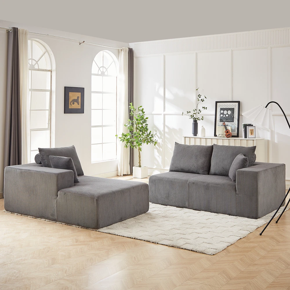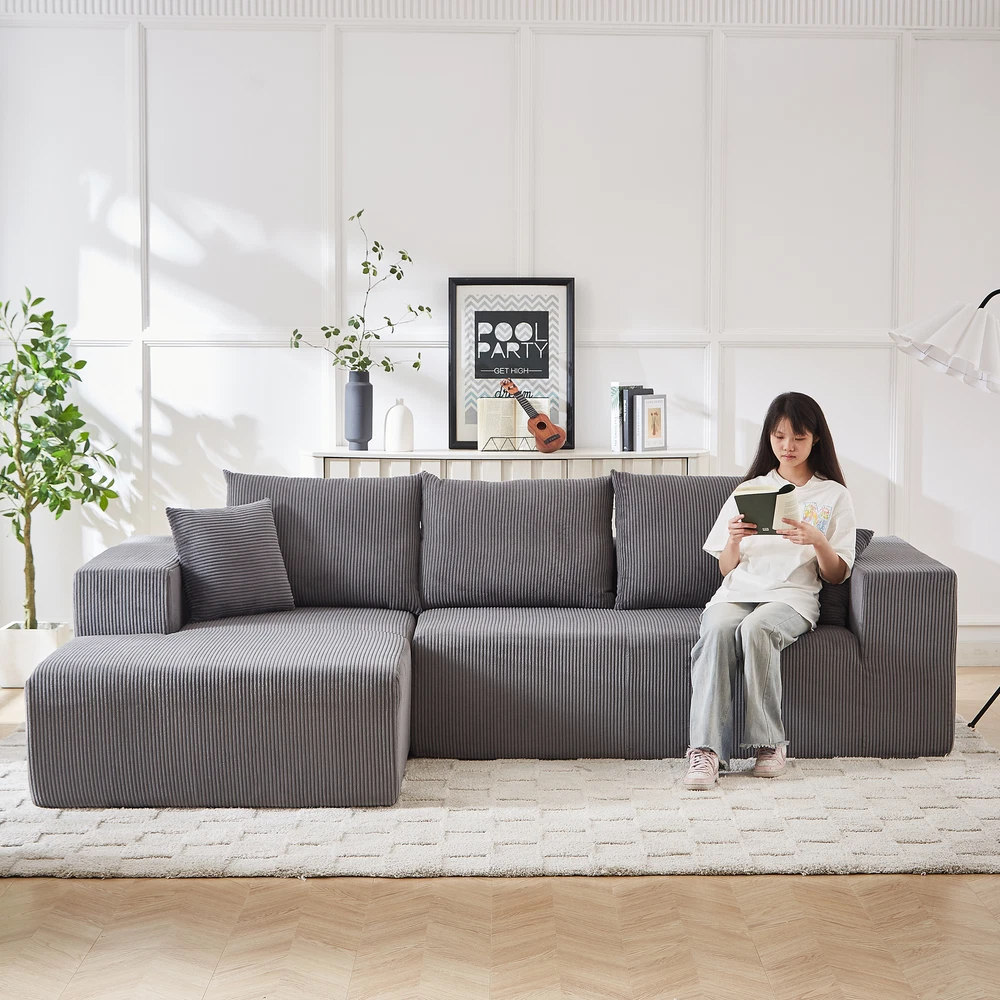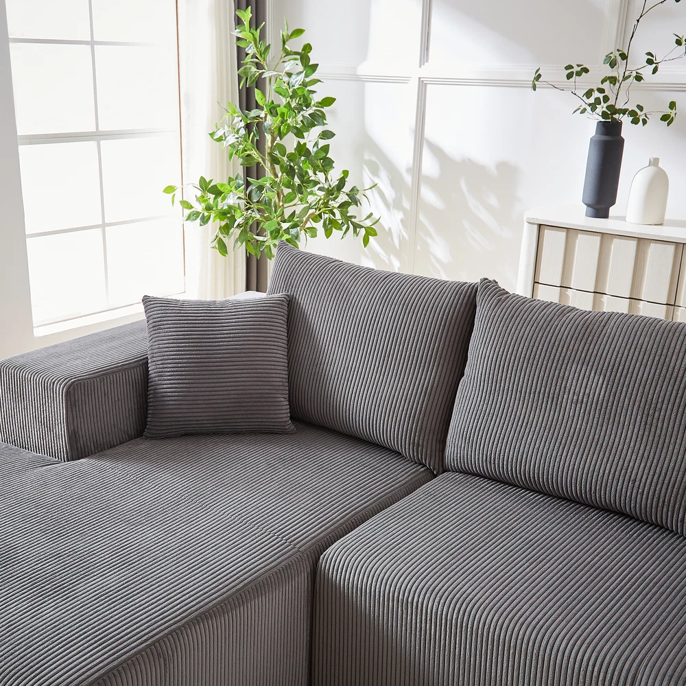 This modern corduroy sectional sofa is a game-changer for any living space! The L-shaped design fits perfectly against the wall to maximize room layout, while the modular pieces let you customize the setup however you like. The soft yet durable upholstery feels amazing, and the clean lines give it a stylish, contemporary look that elevates your decor. Super comfortable for lounging or entertaining, and the neutral color blends seamlessly with any style. A fantastic investment for both comfort and versatility!