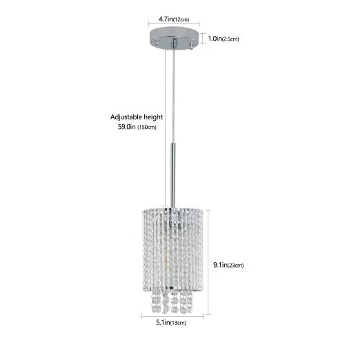 Description Color: Chrome Material: Iron + Crystal Bulb type & quantity: 3*E26 bulbs (The product without bulbs!) Bulb Wattage: Each Bulb Max 60W Applicable voltage: 120V Adjustable: The height can be adjusted Power Supply Mode:Hard-Wired Applicable scenarios: Living room, Dining room, Kitchen, etc Features Elegant Crystal design: The use of high-quality crystal prism design, increase the luxury and brightness of the interior space, make your home environment more elegant and stylish. Three-piece set: Contains three chandeliers suitable for installation in multiple locations such as dining room, kitchen island and living room, providing a consistent aesthetic and ample lighting. Adjustable height: The height of the chandelier can be freely adjusted according to demand to adapt to different ceiling heights and decorative needs to ensure the best lighting effect. Easy installation: With detailed installation instructions and necessary accessories, you can quickly complete the installation without professional knowledge, so that you can easily enjoy the beautiful lighting.