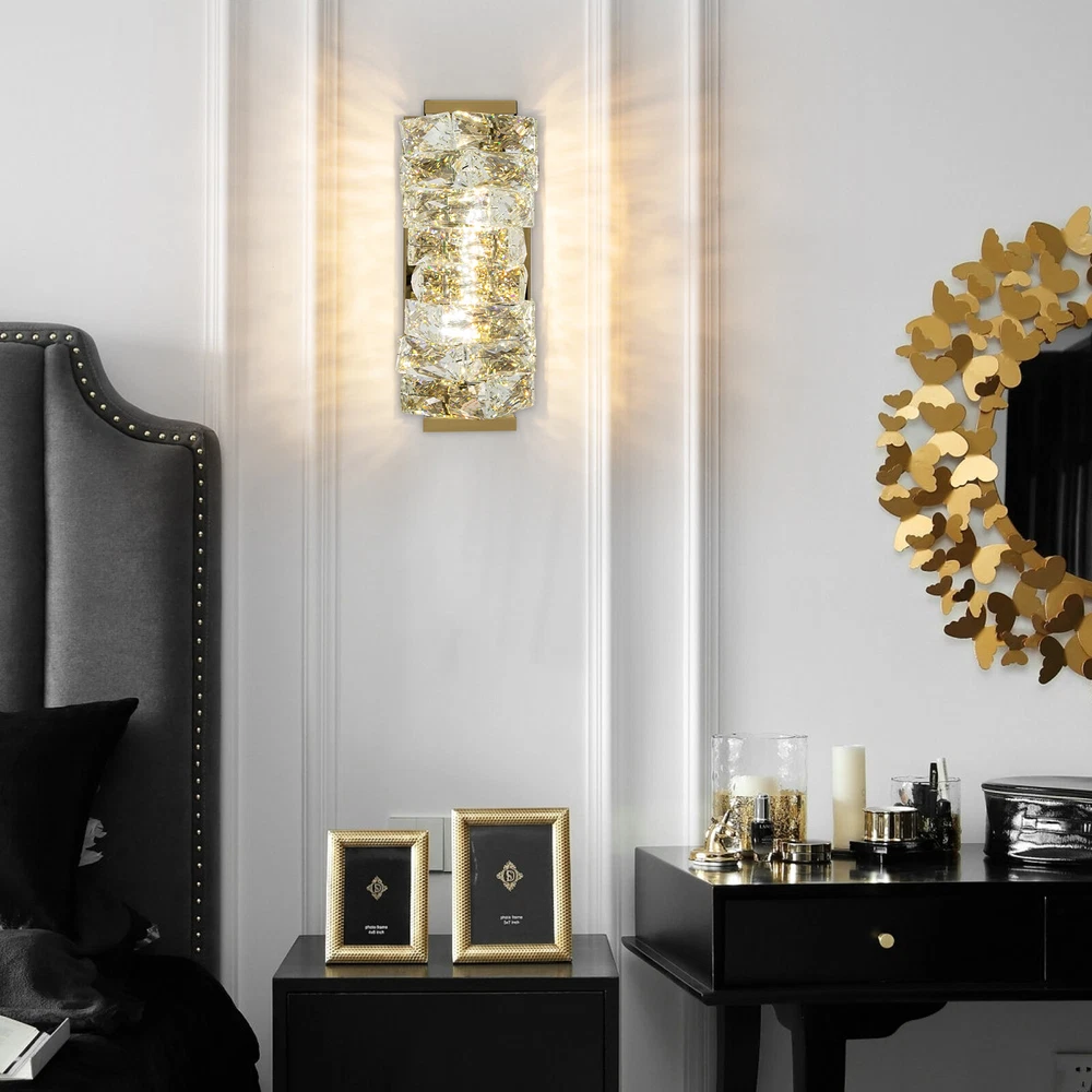 Absolutely in love with this crystal wall sconce! The elegant design adds a touch of modern luxury to any room. The LED lighting is warm and inviting, perfect for creating a cozy atmosphere. High-quality materials ensure durability, and the crystal details catch the light beautifully. It instantly elevates my bedroom and hallway decor—so stylish yet functional! Highly recommend for anyone looking to upgrade their home lighting effortlessly.