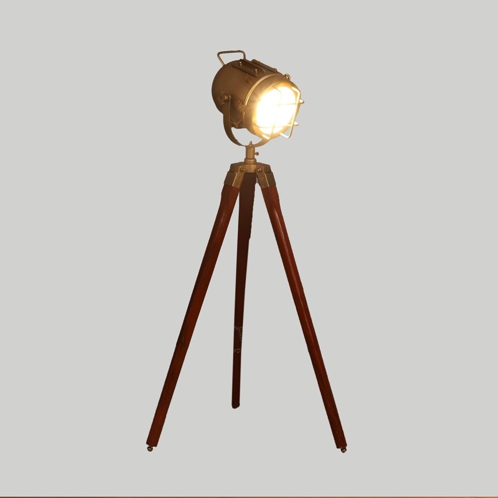 $ 66.0Vintage Brass Tripod Theatre Searchlight Floor Lamp Nautical Spotlight
