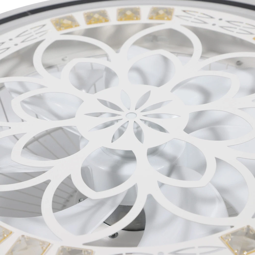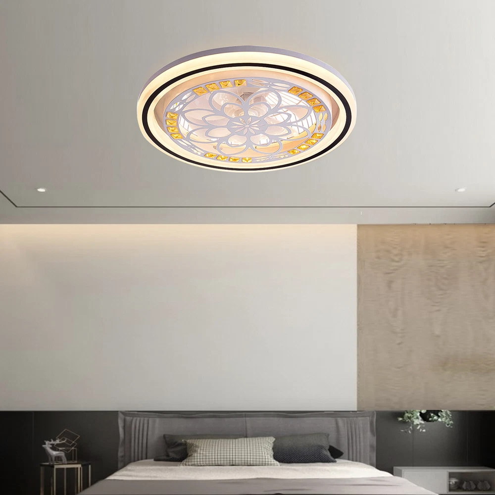 Absolutely love this ceiling fan with light! The dimmable LED chandelier looks stunning, and the three color options (white, warm, neutral) make it perfect for any mood. The remote makes adjusting fan speed and setting timers super convenient—no more getting up to switch settings. It's quiet yet powerful, with three wind speeds that keep the room cool, and the crystal-acrylic design adds a touch of elegance. Installation was straightforward, and the durable iron frame feels sturdy. Great for small to medium rooms, and the energy-efficient LED is a bonus. Highly recommend for both style and function!