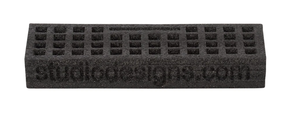 The flexible foam maker organizer by Studio Designs has 44 compartments to accommodate drawing supplies up to 15-mm in diameter. These trays are the latest innovation in art supply storage. They are lightweight, durable and will keep your pencils, brushes and markers neat and handy. We also offer flexible foam organizers in a 24 compartment (item # 12175) or 96 compartment (item 12174) configuration for pens, pencils and markers. Each organizer features a cell slot to keep your clean and close during your projects. Designed to fit into easily into the premier metal art tray (item # 12167, 12168, 12169), they can also stand alone to be used as an office or craft supply drawer organizer Overall dimensions: 11.75W x 4D x 2H 44 slots for pens, pencils, markers, and brushes: 15mm slot for mobile or other supplies: 3.5W Can also be used as a desktop organizer Sold as a 2-pack in a Hanging box