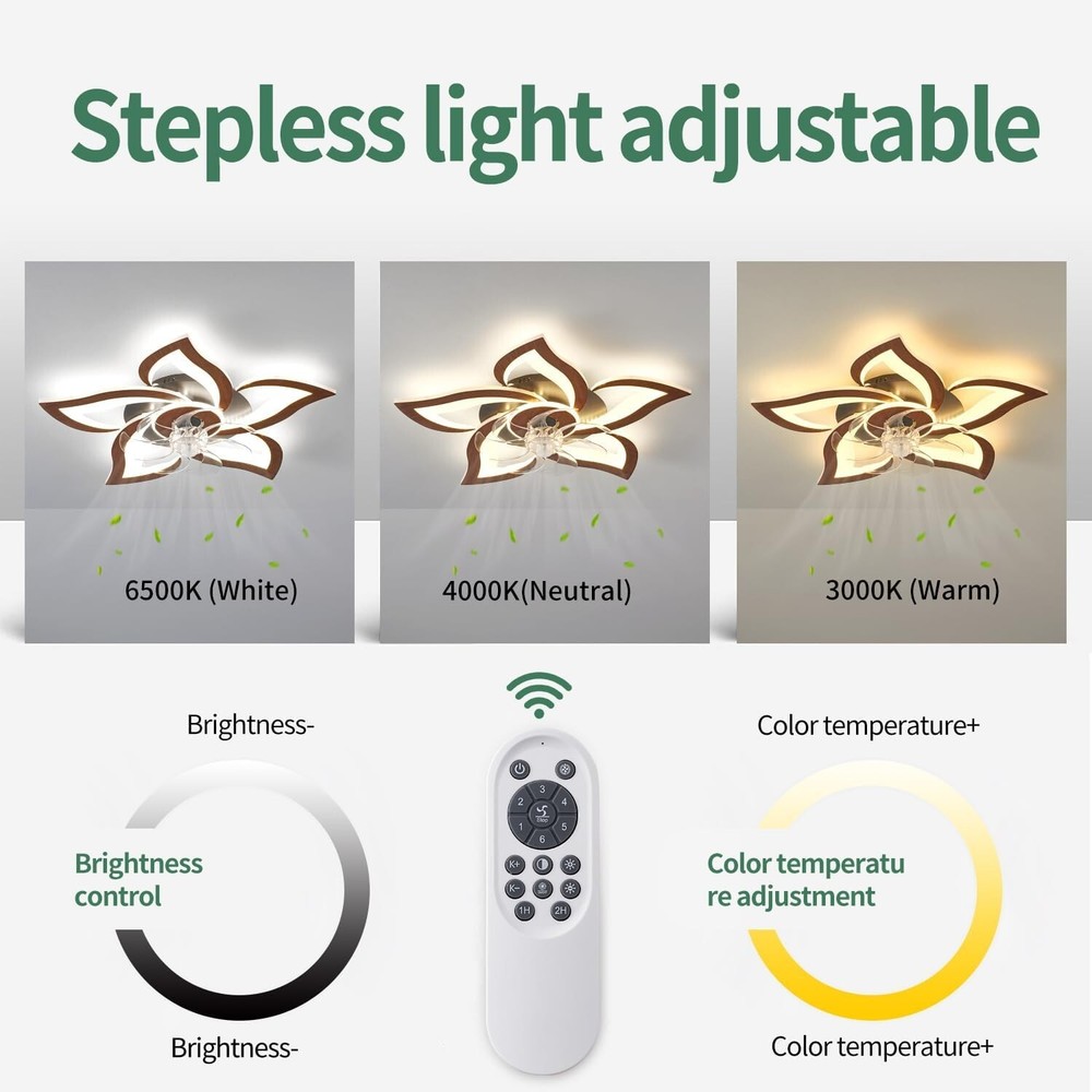 Modern Ceiling Fan with Lights, Flush Mount Ceiling Fan with Remote, Low Profile Ceiling Fan with 3 Light Color 6 Speeds, bladeless ceiling fans for Kitchen Bedroom Malnutcolor 【2-in-1 Ceiling Fan with Light】—The low profile ceiling light and modern geometric ceiling fans can work independently, providing comfortable lighting for your family, while bringing cool wind. 【Reversible Ceiling Fan with Lights】—This geometric ceiling fan light can rotate in both forward and reverse directions, It releases a large amount of cold air in summer mode, and turns on reverse mode in winter to keep the room warm and make you feel more comfortable in any space. Suitable for rooms ranging from 150 to 250 ft², such as living rooms, bedrooms, dining rooms, nurseries, or children's rooms. 【Remote Control & APP】—This flush mount ceiling fan with light has 6 different wind speeds dand a 1/2 hour timing setting, as well as stepless dimming function, all of which can be controlled by the remote control/APP. 【Three Color Dimming Fan with Light】—Modern designed LED slim ceiling fan lights. You do not need to purchase additional bulbs. At the same time, it has 3000K warm light, 4500K medium white, 6000k cold white, and 3-level brightness to meet different lighting needs. 【With Light Memory Function】—This small ceiling fan with light has a light memory function. If the light is turned on for more than 10 seconds each time, the next time the light is turned on, the brightness and color temperature of the light from the last time it was turned off can be maintained. 【Satisfied After-sales Service】— We provide 1 of after-sales service. If you have any after-sales issues with the intelligent ceiling fan with lights, you can send an to consult us 24 hours a day, and we will definitely solve them for you. innovation in fan lamp. Own factory, patents, great components, and expertise in design create energy-efficient and stylish fan lights, suitable your house.